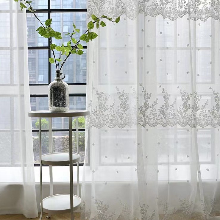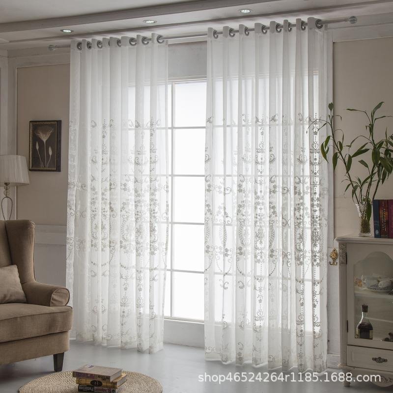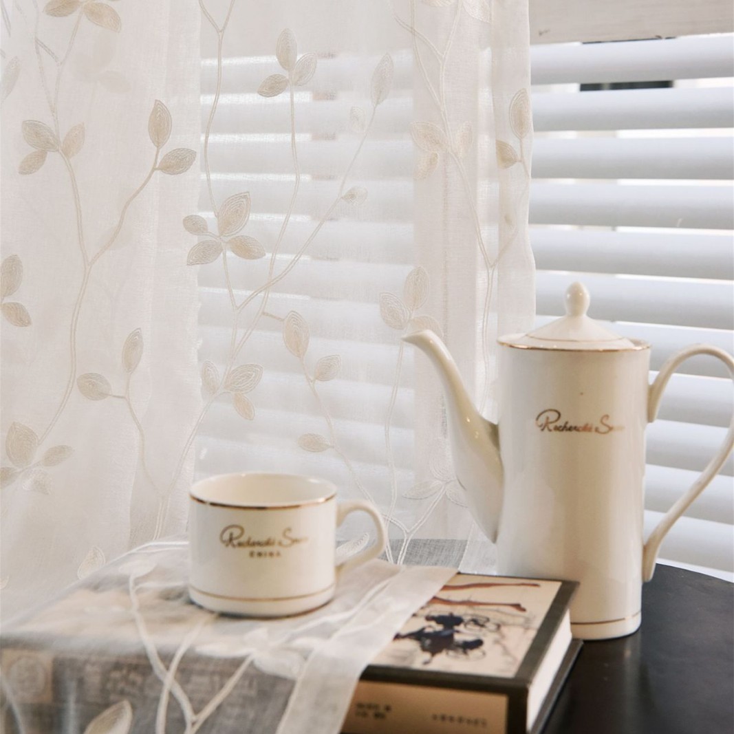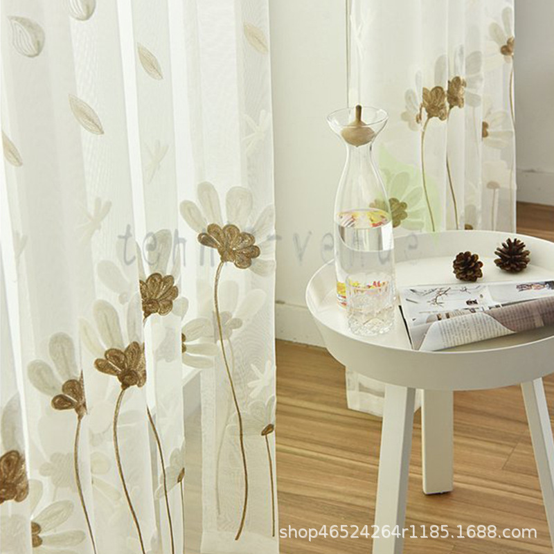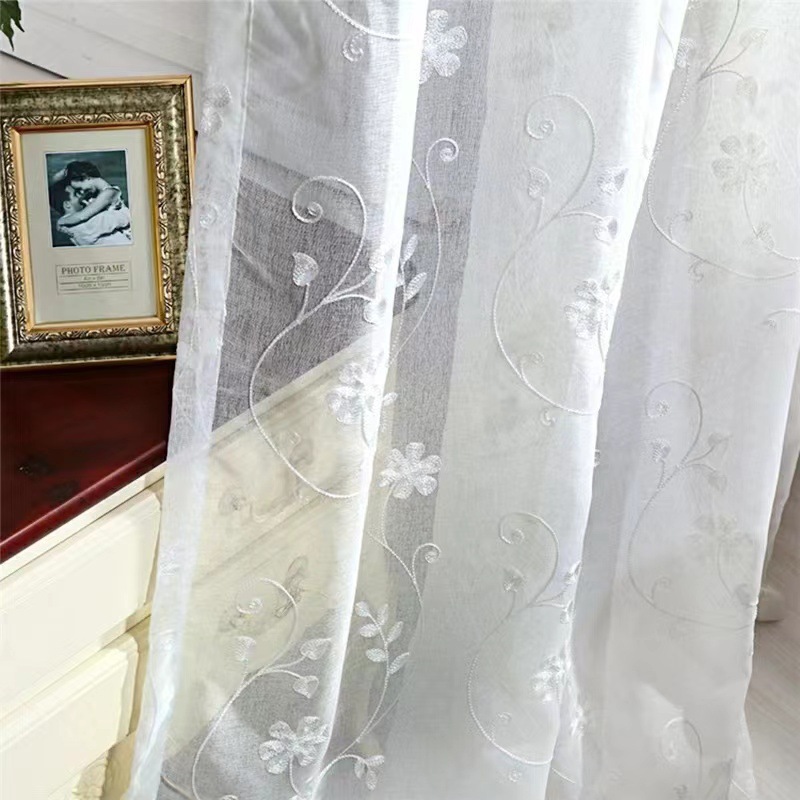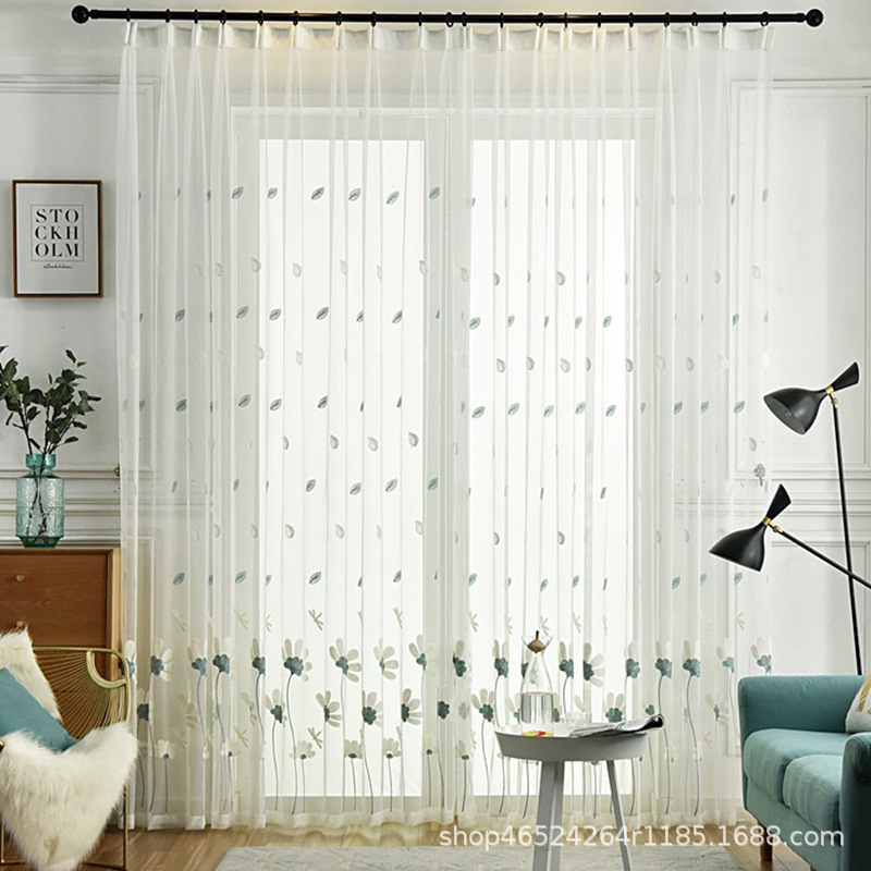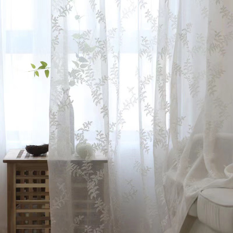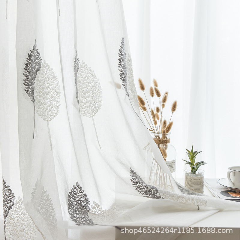 크로스 보더 화이트 거즈 자수 북유럽 스타일 심플 모던 나뭇잎 거실 침실 연구 베이 창 커튼 스크린스토어 가기