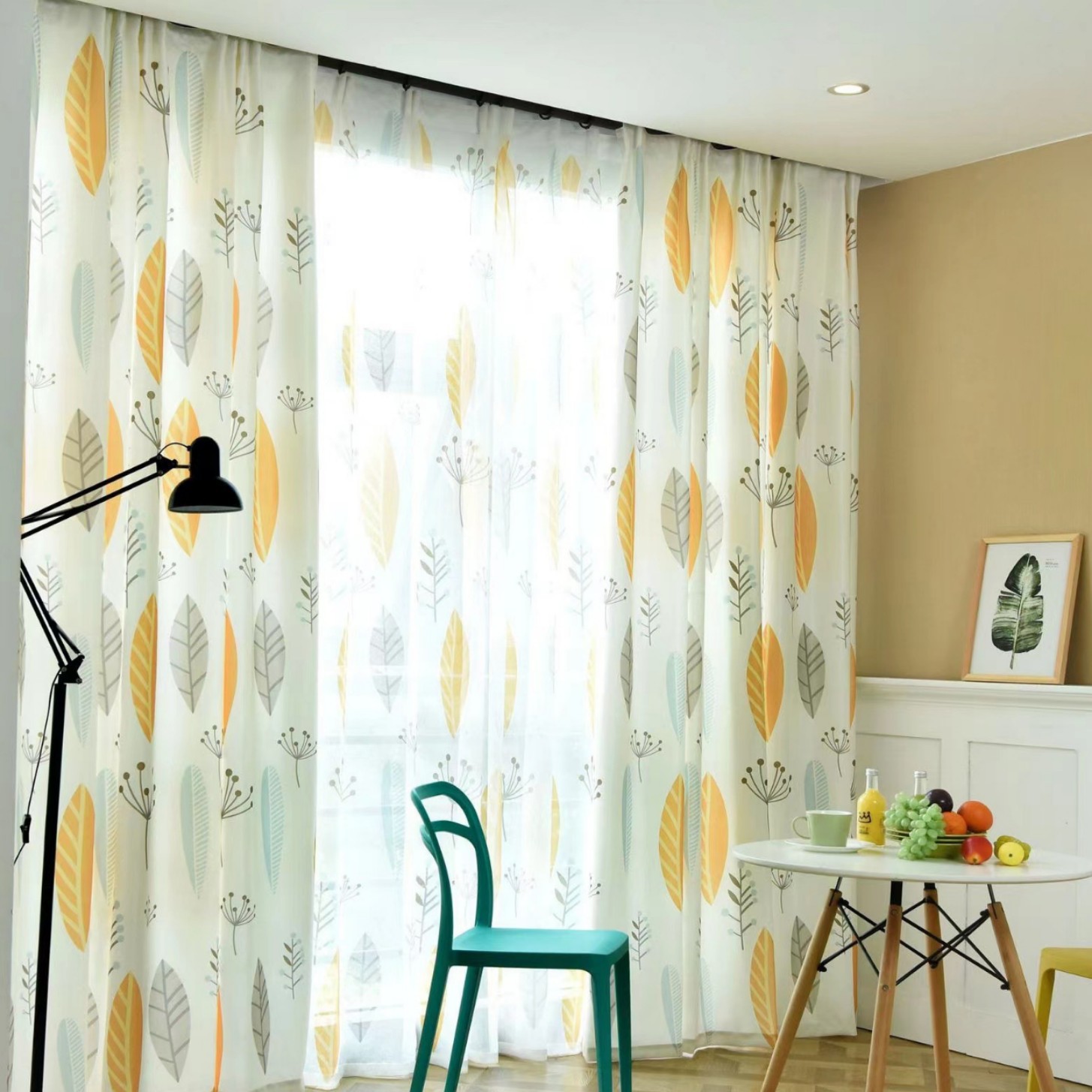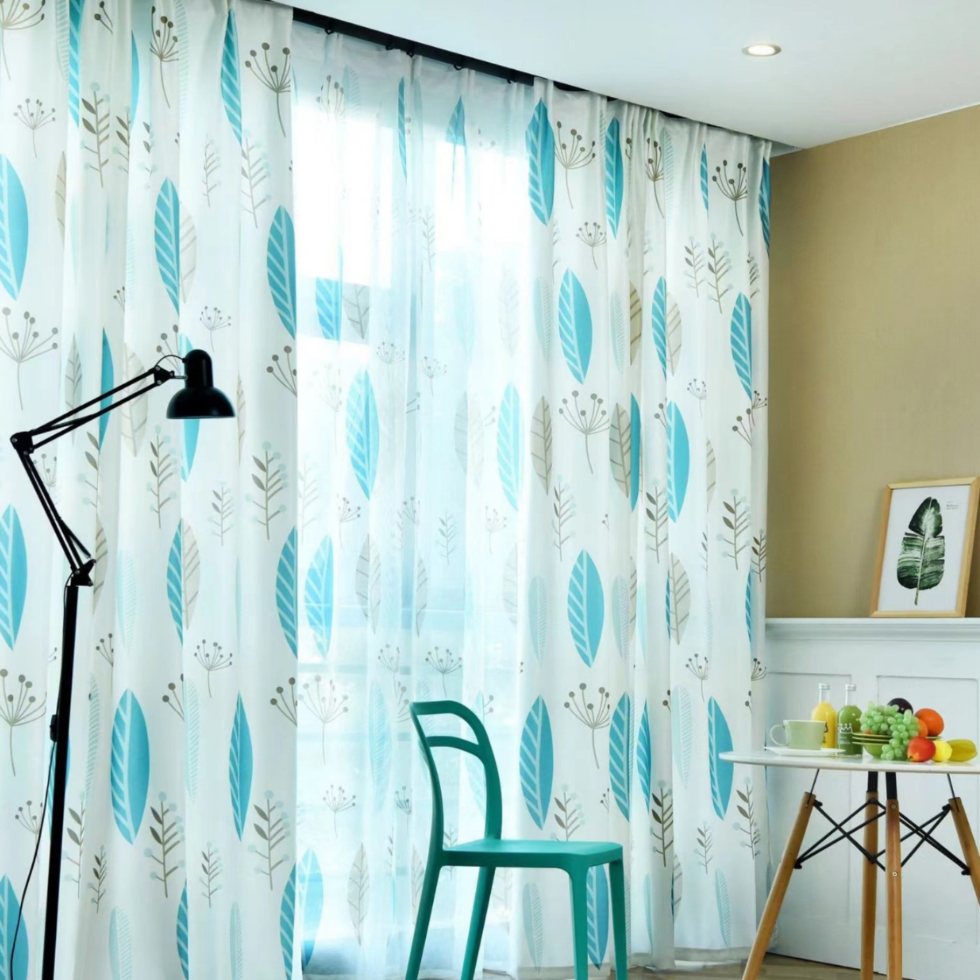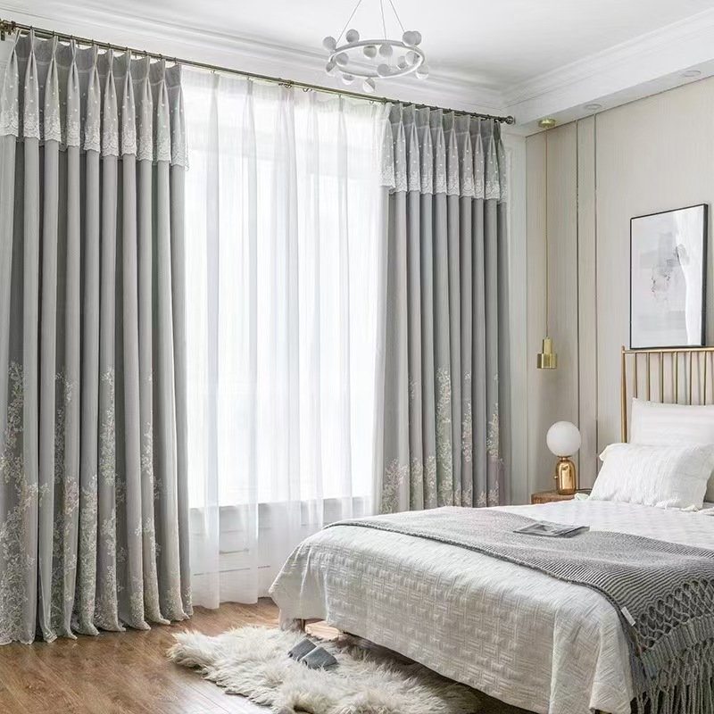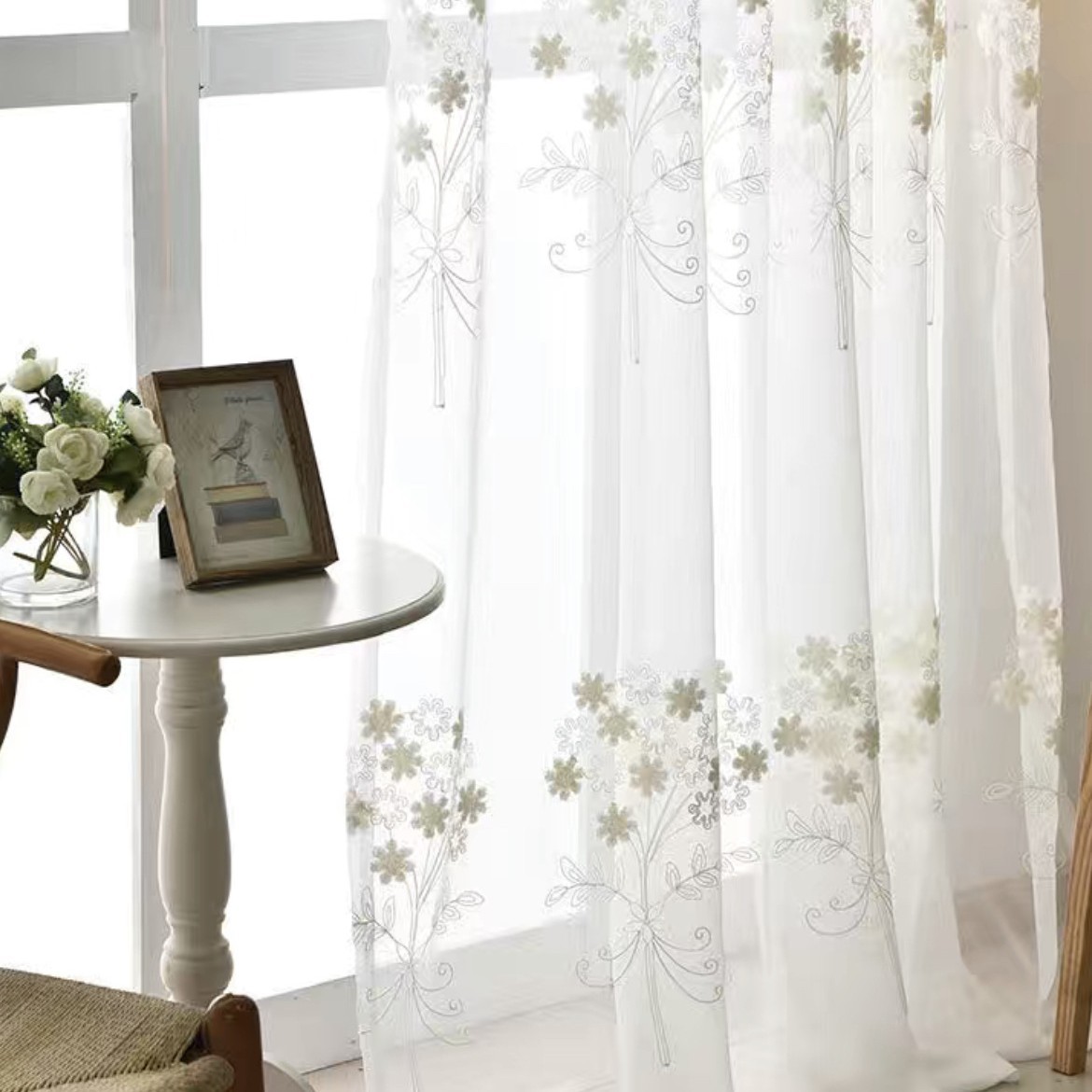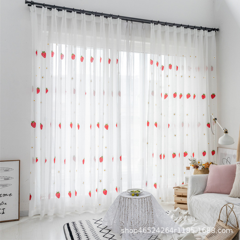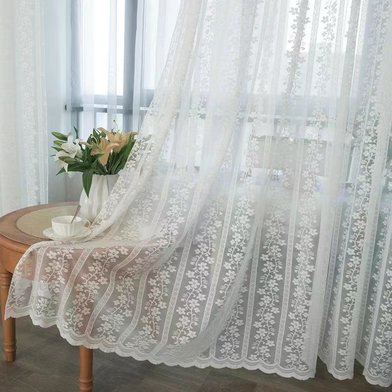 크로스 보더 화이트 거즈 자수 북유럽 스타일 심플 모던 나뭇잎 거실 침실 연구 베이 창 커튼 스크린스토어 가기
