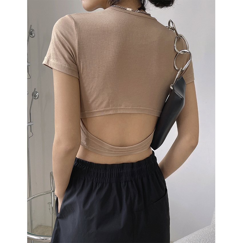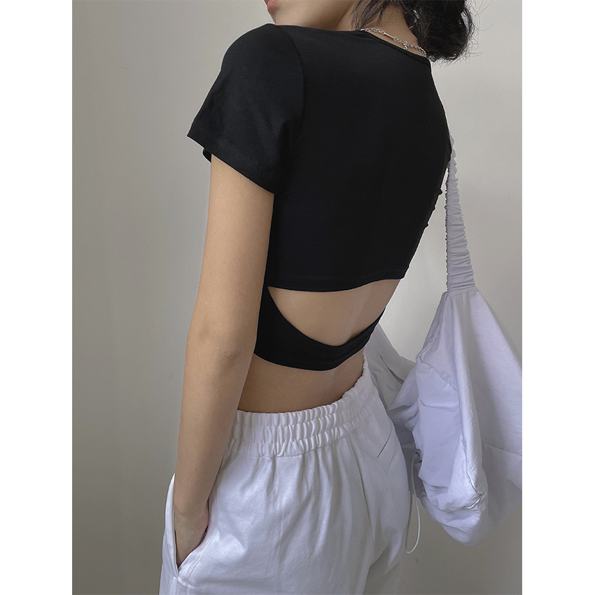 "개인 스타일" 여름 새로운 유럽과 미국의 유행 중공 디자인 라운드 넥 반팔 티셔츠 슬림핏 슬리밍 탑 여성스토어 가기