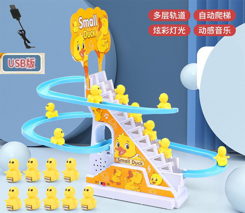 같은 작은 노란 오리 오리의 소리를 흔들어 계단 어린이 작은 오리 슬라이드 장난감 전기 교육 대화 형 음악 트랙스토어 가기