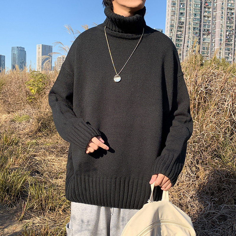 M60Pexrozna 트렌디 브랜드 느슨한 터틀넥 스웨터 남자의 가을과 겨울 복고풍 일본 의상 홍콩 스타일 니트 베이스 셔츠