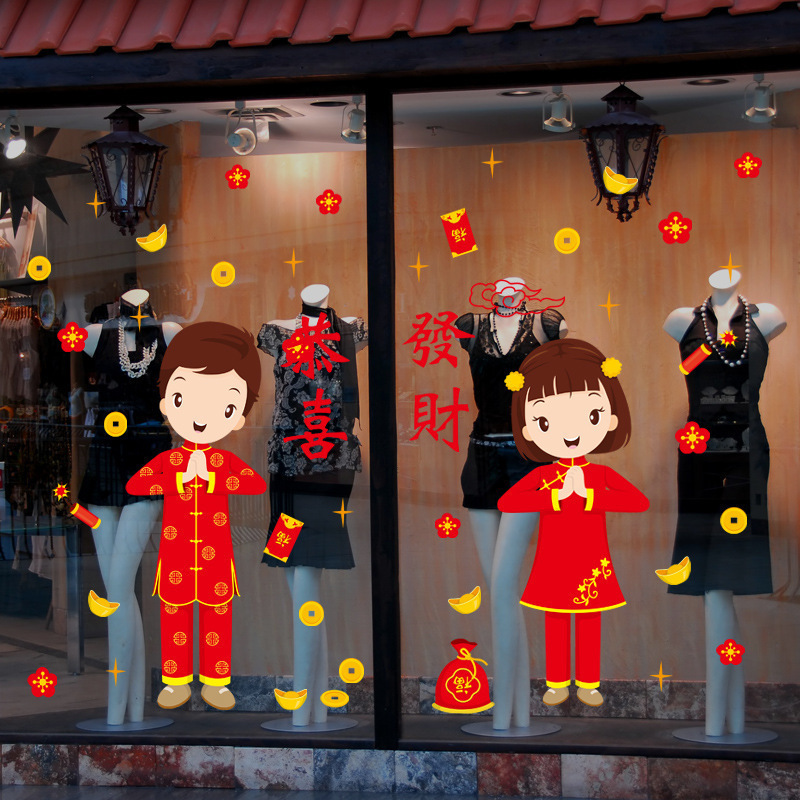 XL857 직접 판매 새해 봄 축제 축제 TV 소파 배경 장식 방수 이동식 벽 스티커스토어 가기