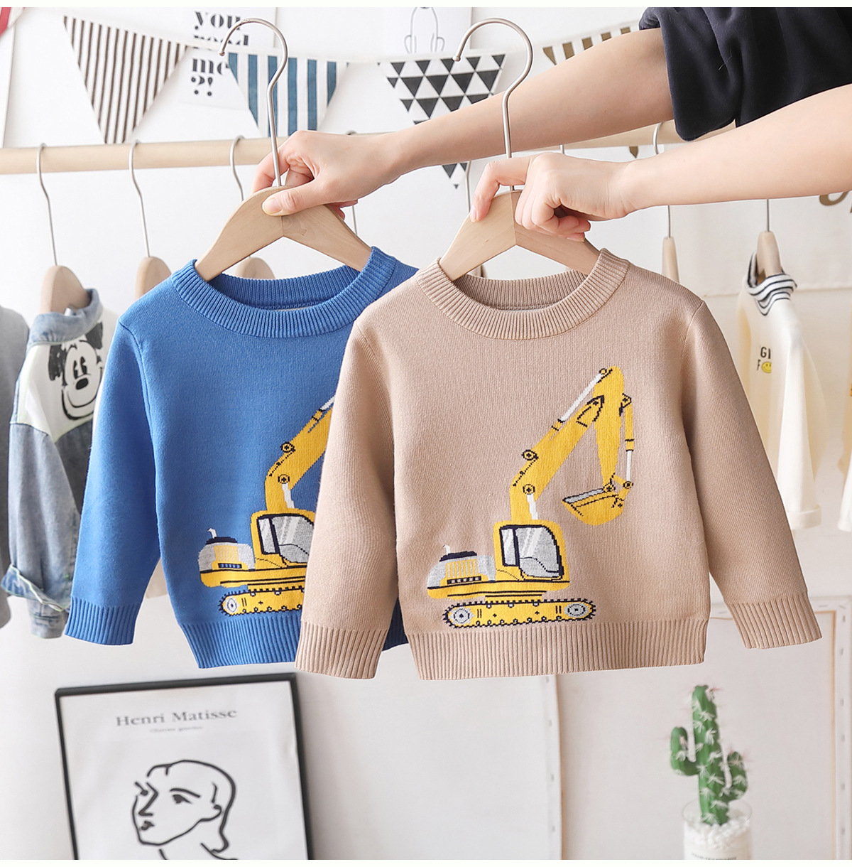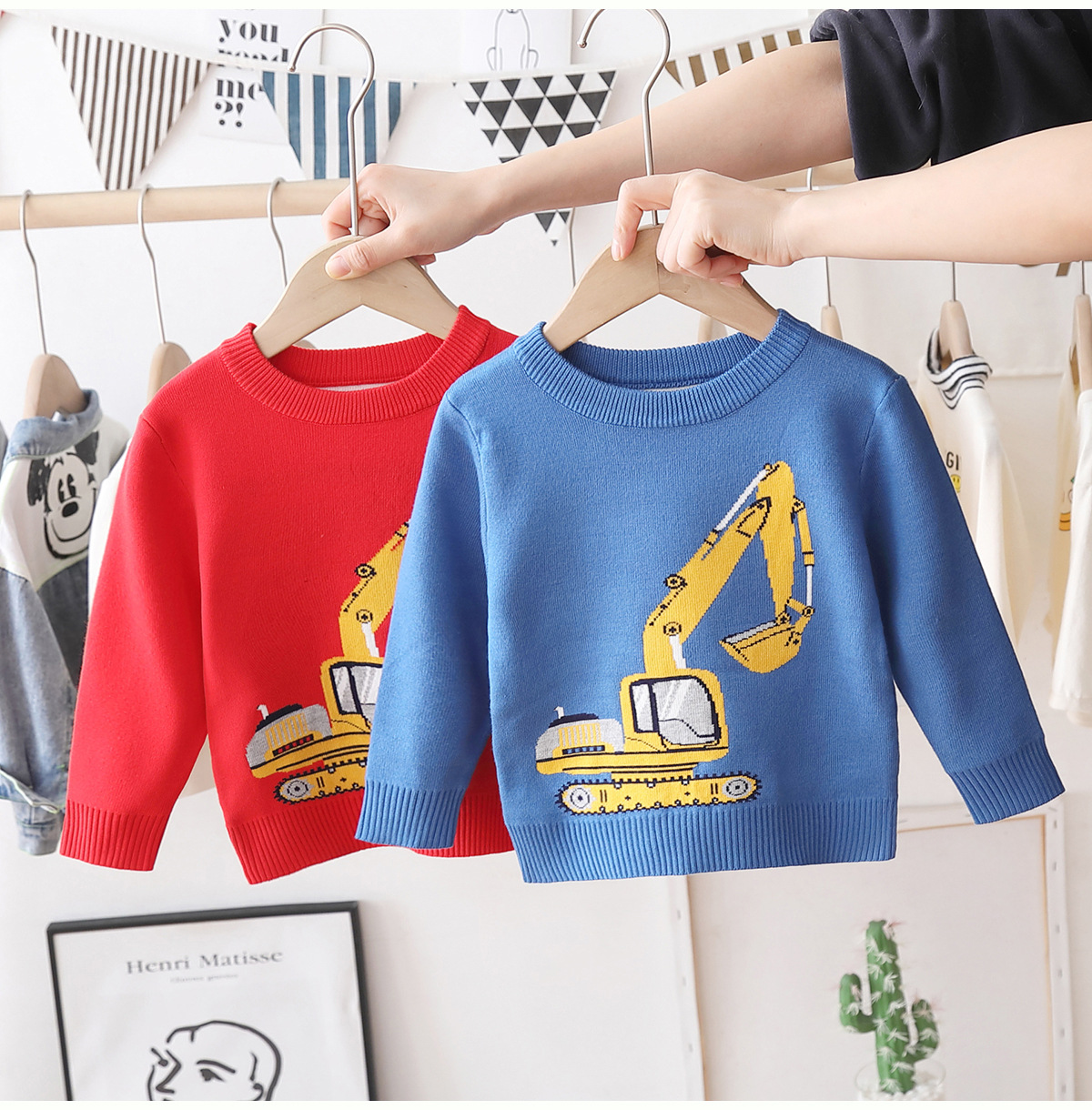 소년 풀오버 어린이 외국 스타일 스웨터 2023 봄과 가을 새로운 아기 만화 기본 셔츠 머리카락 세대스토어 가기