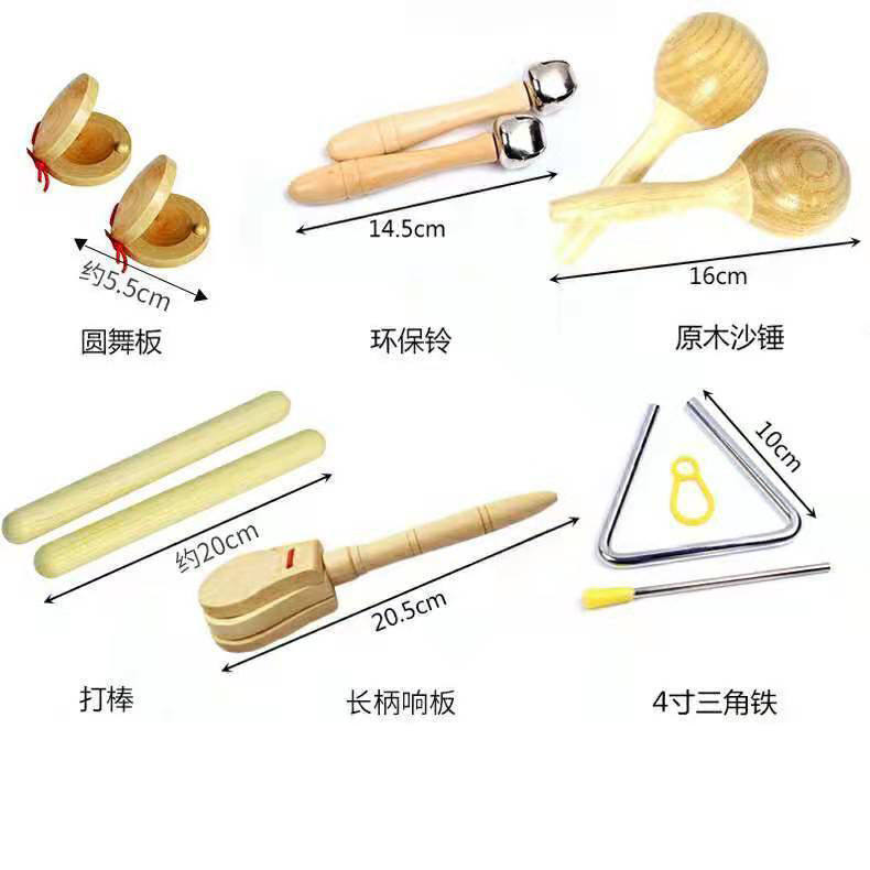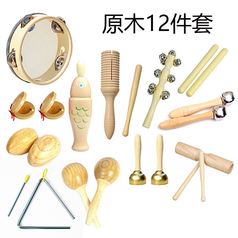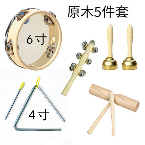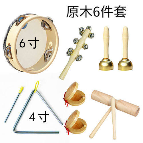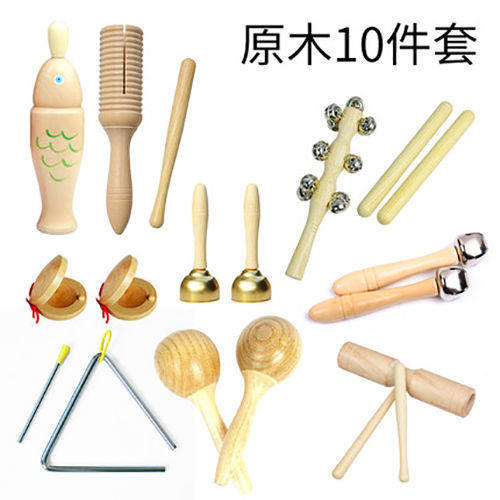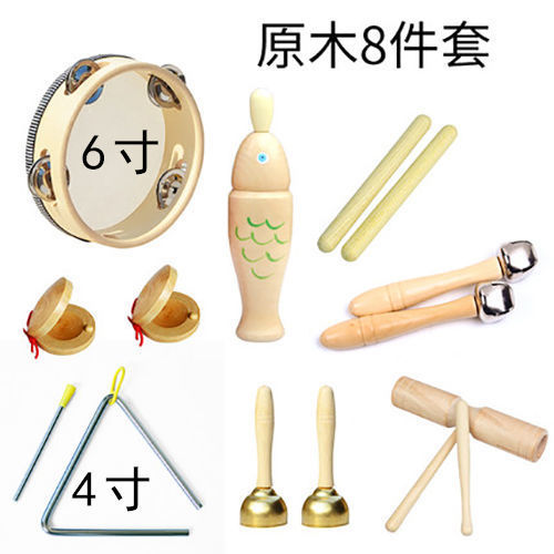 나무 물고기 타악기 오프 어린이 트라이앵글 링 보드 더블 링거 샌드 해머 탬버린 드럼 벨 세트 유치원스토어 가기