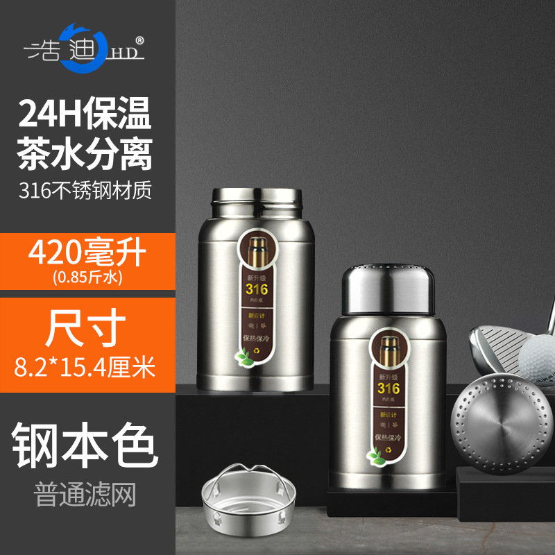 하오디 316 스테인리스 대용량 보온병 남녀공용 성인용 간편한 차 끓이기 휴대용 비즈니스 여행용 물컵스토어 가기