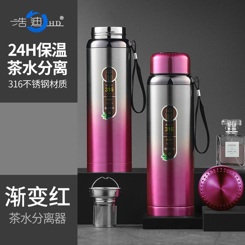 하오디 316 스테인리스 대용량 보온병 남녀공용 성인용 간편한 차 끓이기 휴대용 비즈니스 여행용 물컵
