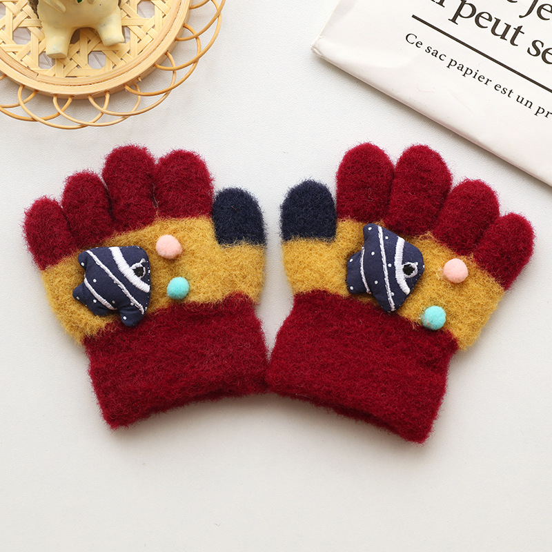 어린이 장갑 다섯 손가락 아기 가을과 겨울 귀여운 유행 소년 소녀 학생 두꺼운 1-3 세 2 따뜻한 아이들