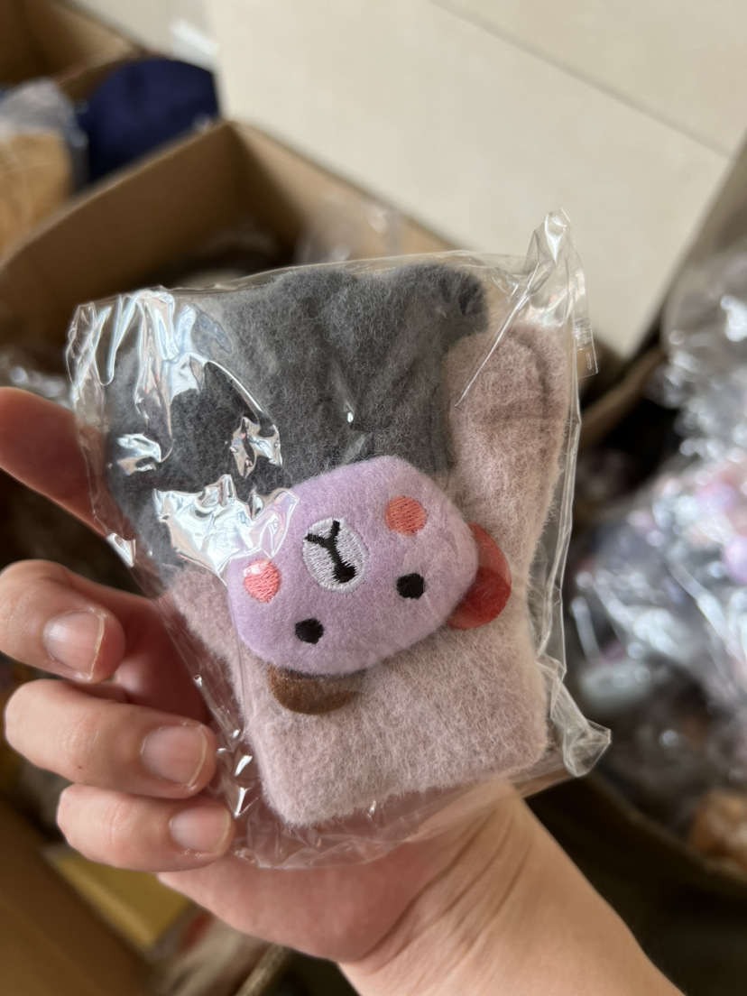 小糖豆毛绒手套女秋冬季保暖加厚毛茸露指可触屏分指学生骑车防寒