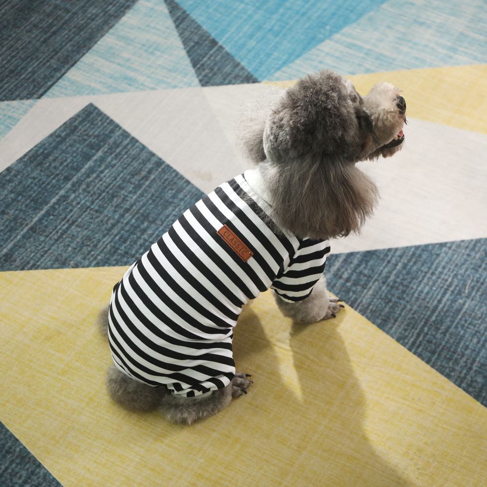소형, 중형 및 대형 개 면 네 다리 스트라이프 홈 헤어 프루프 풀오버 래브라도 골든 헤어 테디 독 옷
