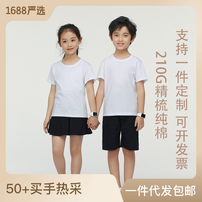 빗질 퓨어 컬러 면 반팔 티셔츠 아동복 반팔 부모-자식 의류 수업 의류 인쇄 로고 베이스 셔츠스토어 가기