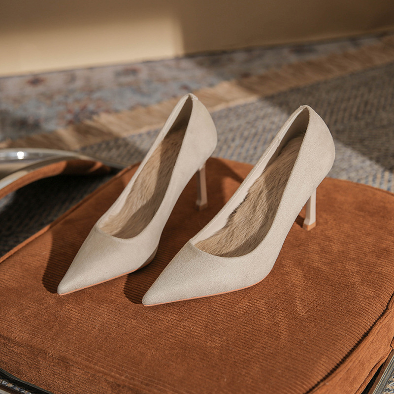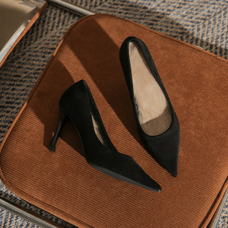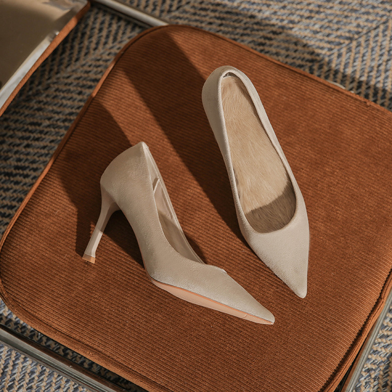 8811 뾰족한 발가락 하이힐 여성 스틸레토 힐 2022 봄 신상 스웨이드 패션 한국식 통근 신발