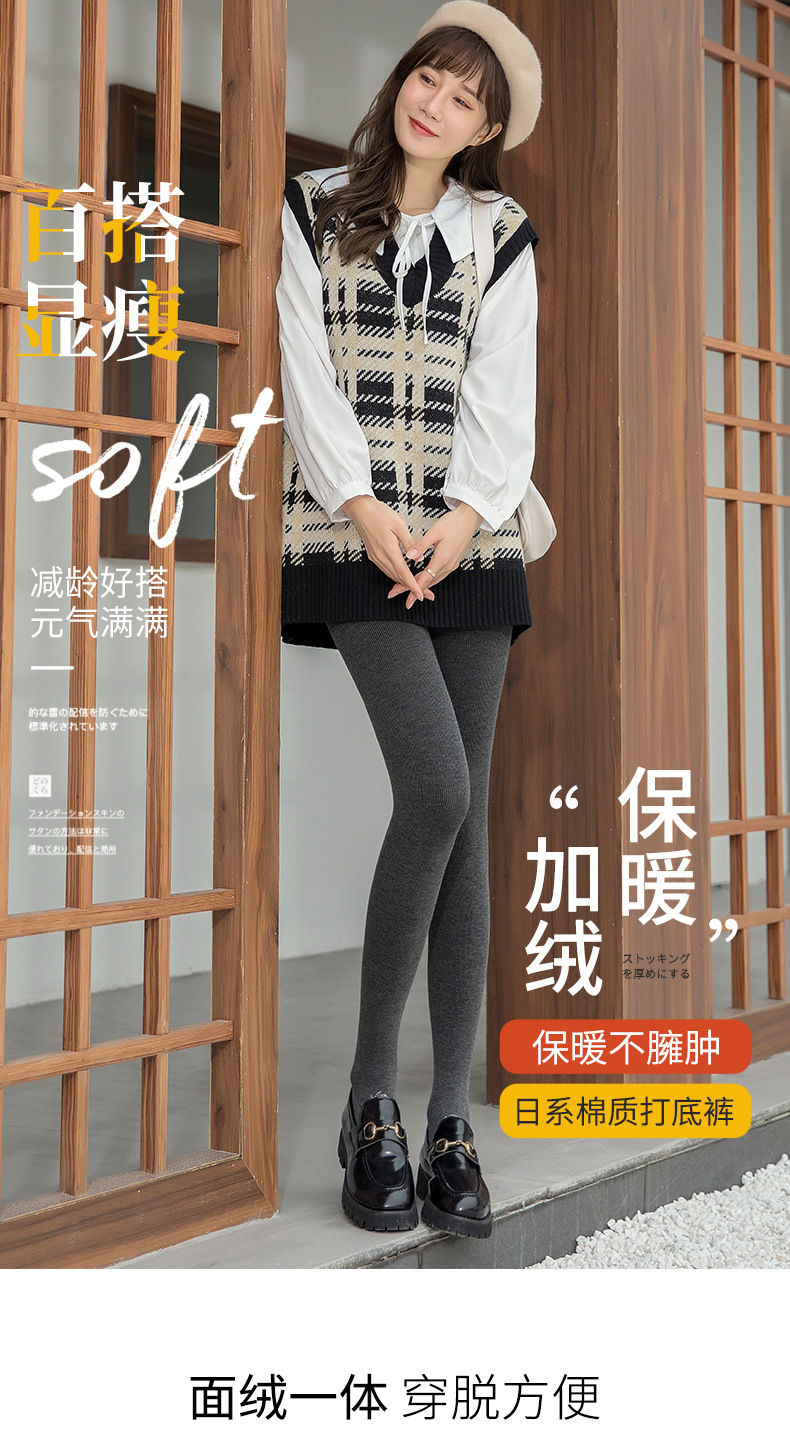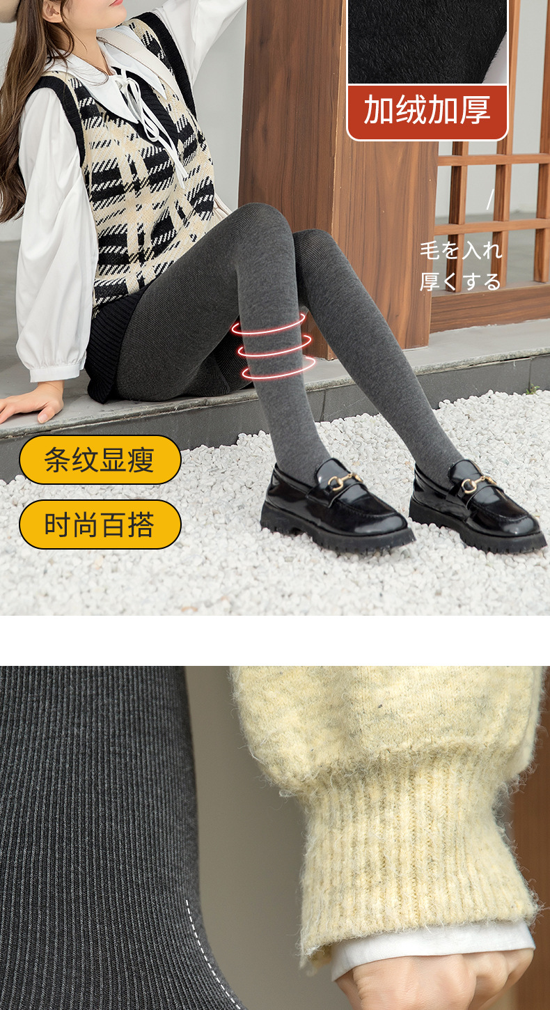 여성용 겉옷 가을과 겨울 기모 두꺼운 따뜻한 면 팬티 스타킹 고탄력 스키니 다리 발 바닥 수직 스트라이프 레깅스스토어 가기