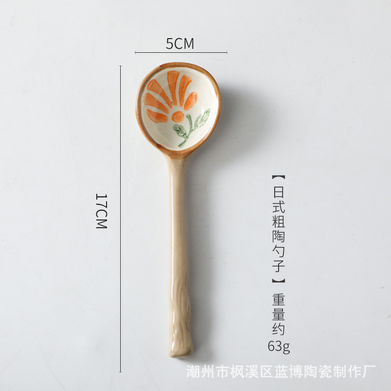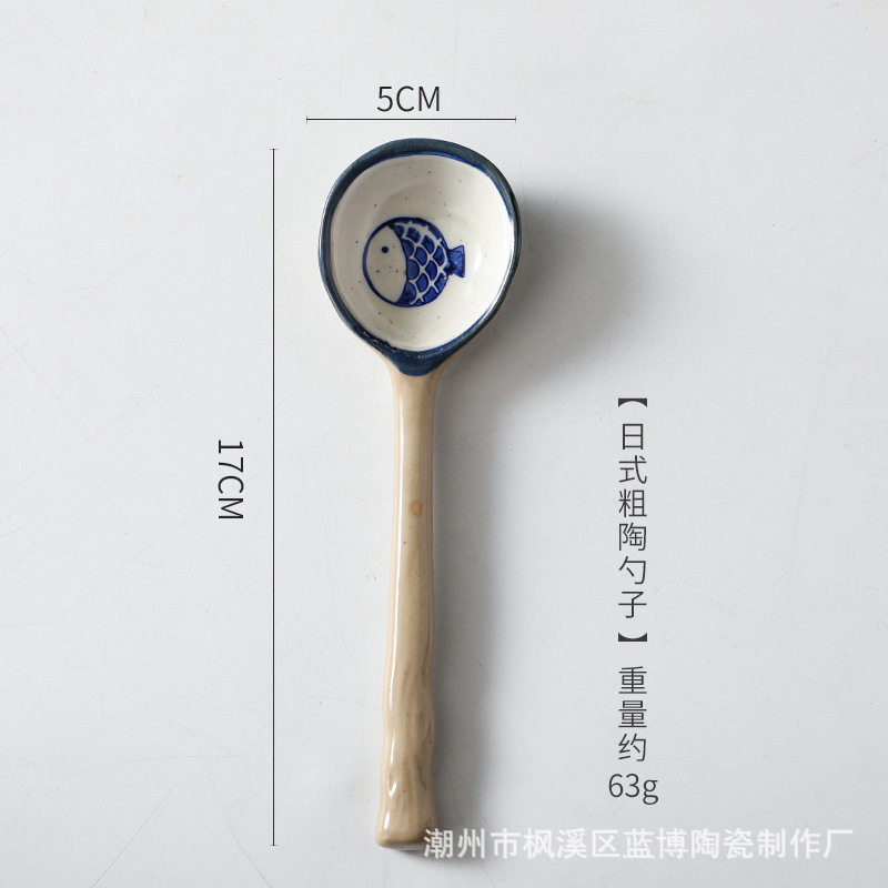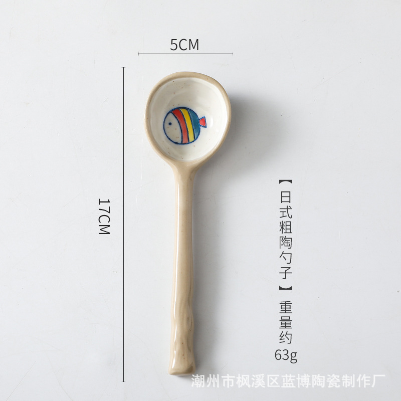 만화 손으로 그린 숟가락 일본식 가정용 석기 어린이 보충 수프 숟가락 쌀 숟가락 세라믹 긴 손잡이 믹싱 스푼 세트스토어 가기