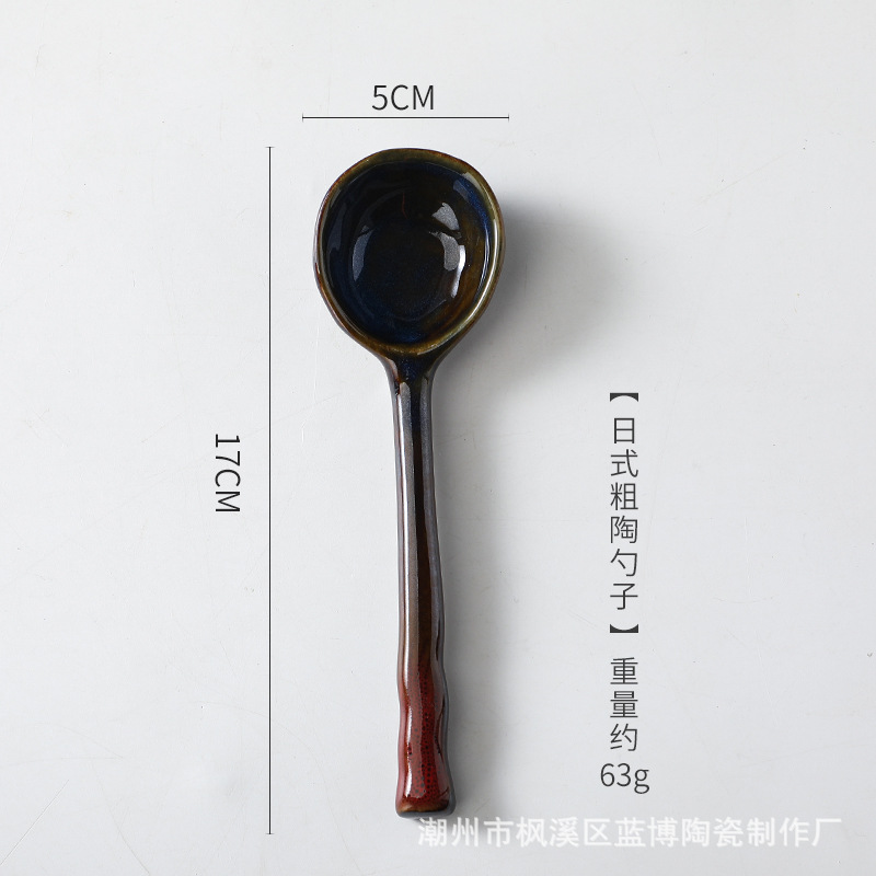 만화 손으로 그린 숟가락 일본식 가정용 석기 어린이 보충 수프 숟가락 쌀 숟가락 세라믹 긴 손잡이 믹싱 스푼 세트