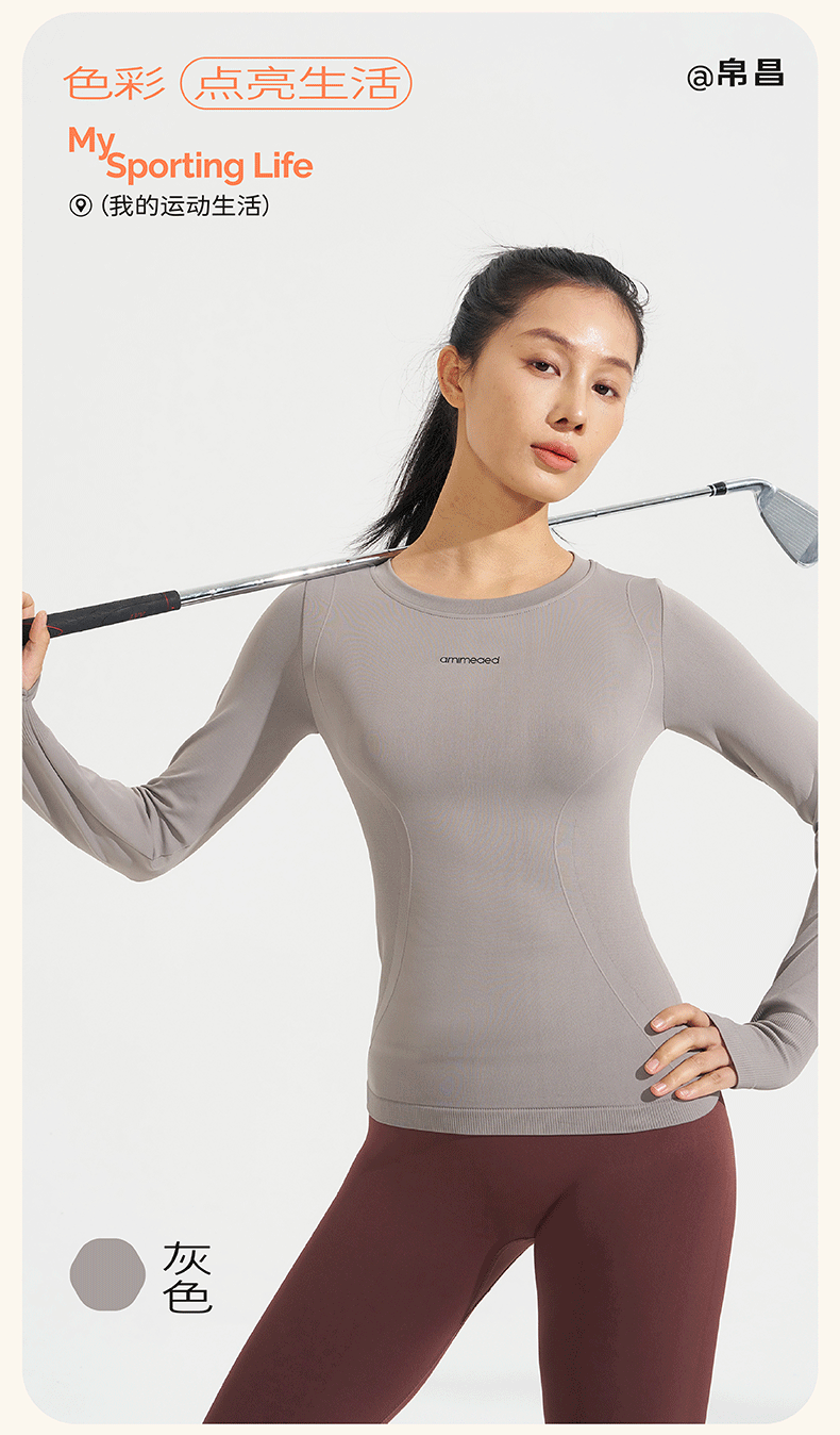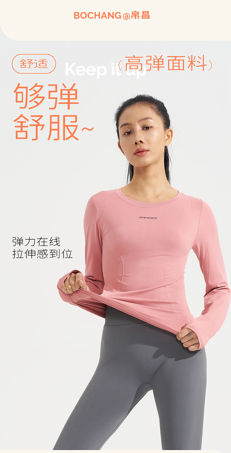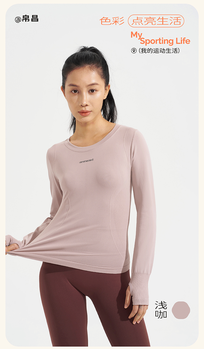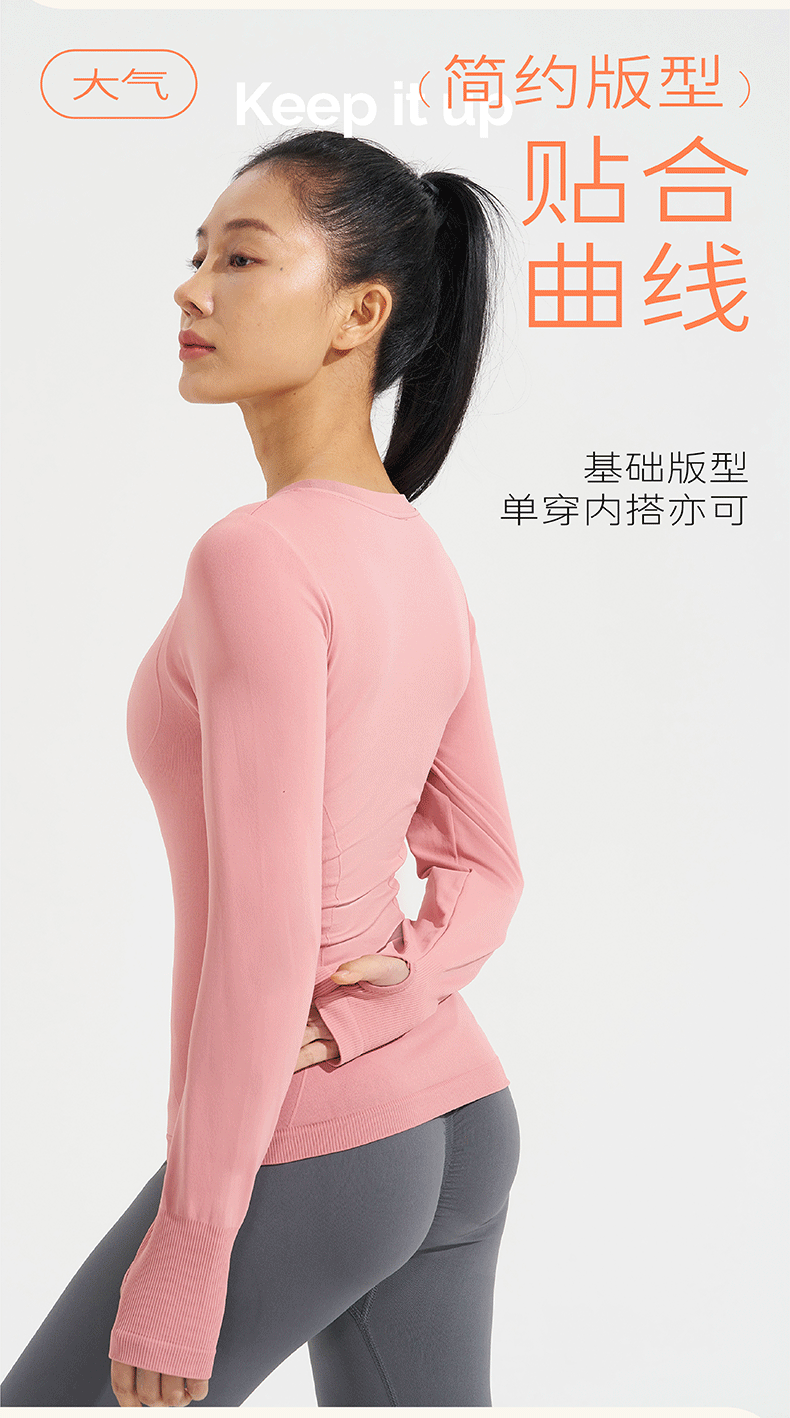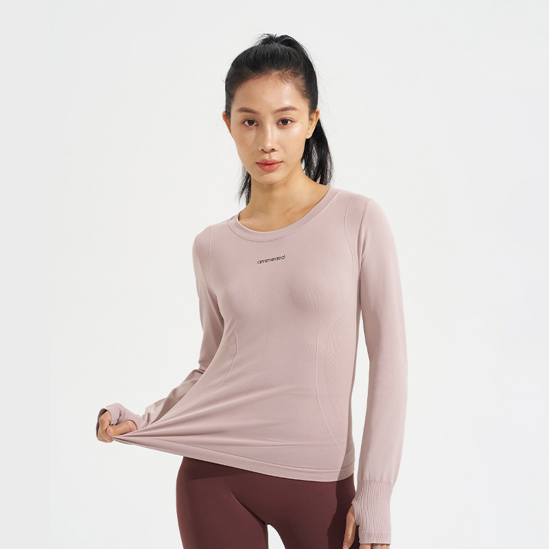 새로운 가을, 겨울 요가 탑 운동복 라운드 넥 티셔츠 슬림 긴팔 수분 흡수 야외 사이클링 및 달리기스토어 가기