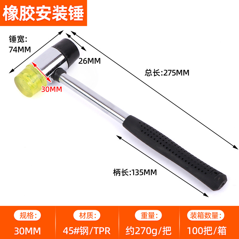 공장 고무 손잡이 장착 해머 수동 DIY 태핑 및 염색 도구 해머 더블 헤드 라운드 헤드 고무 해머 망치 도매