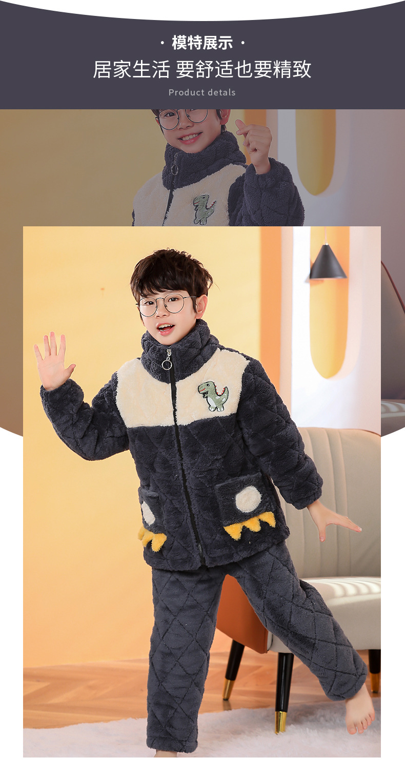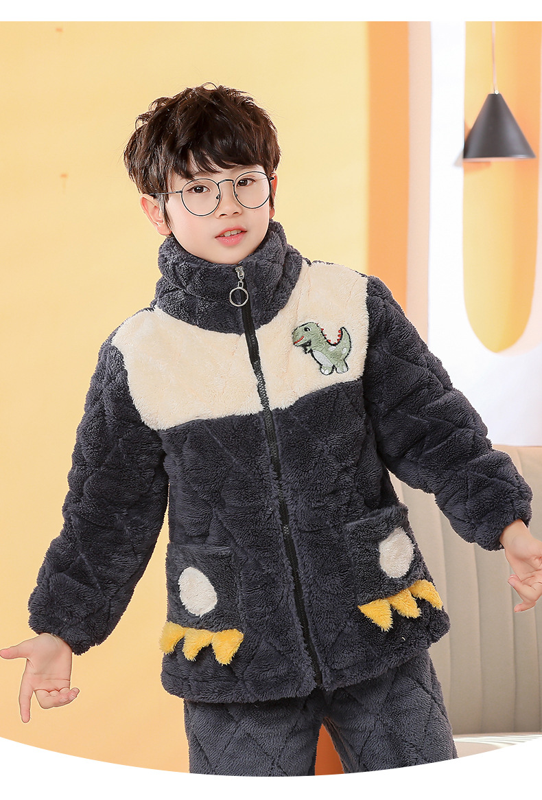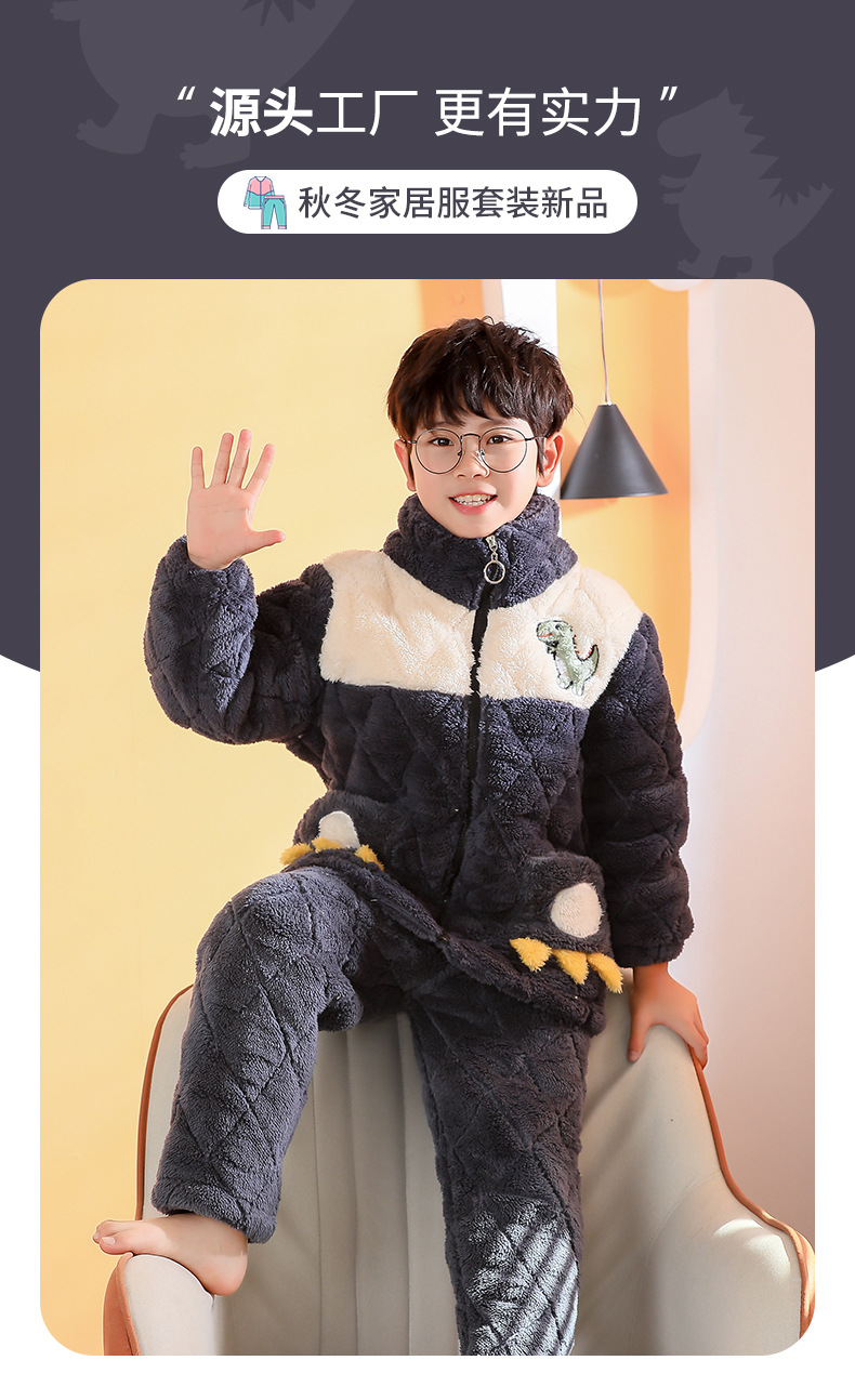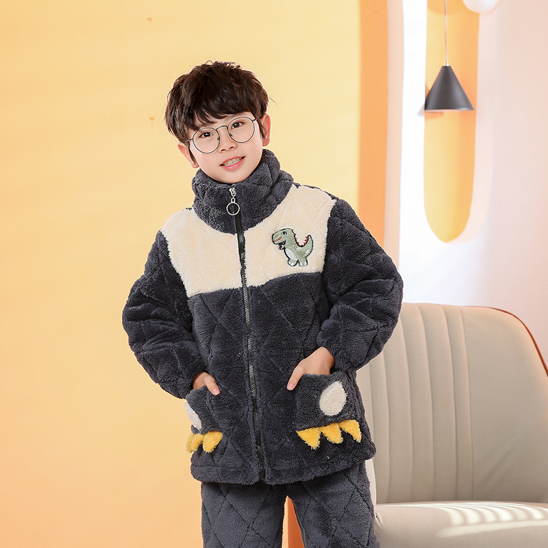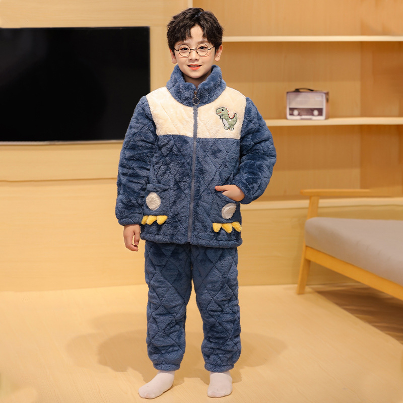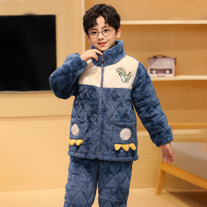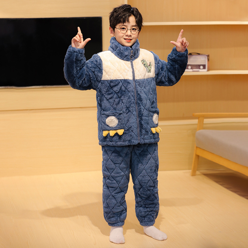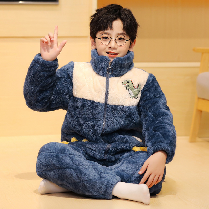 플란넬 따뜻한 가을/겨울 어린이 잠옷 산호 양털 3 층 면 기모 두꺼운 소년 중대형 어린이 가정복스토어 가기