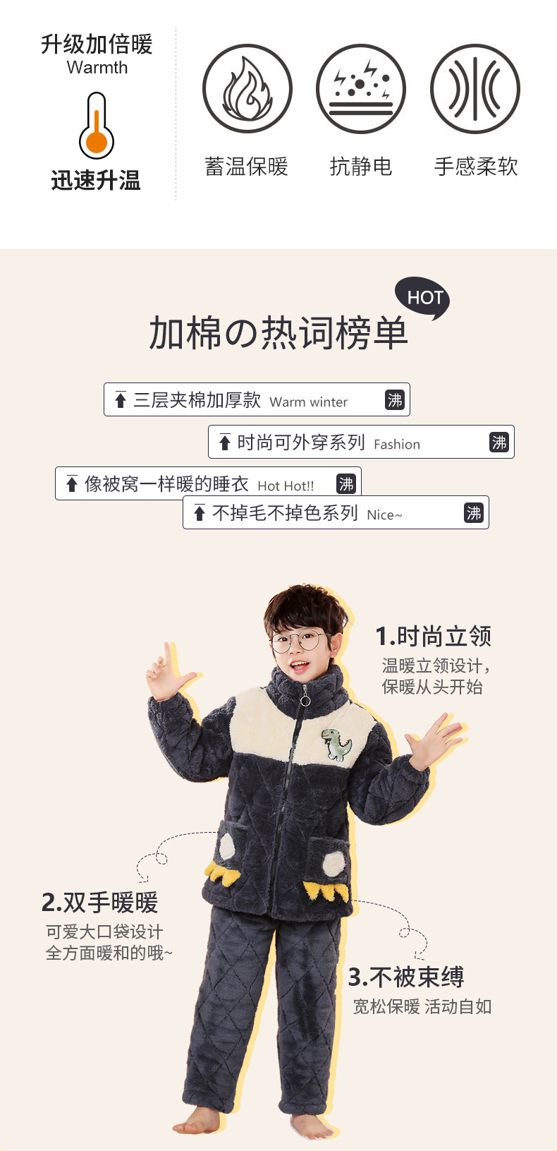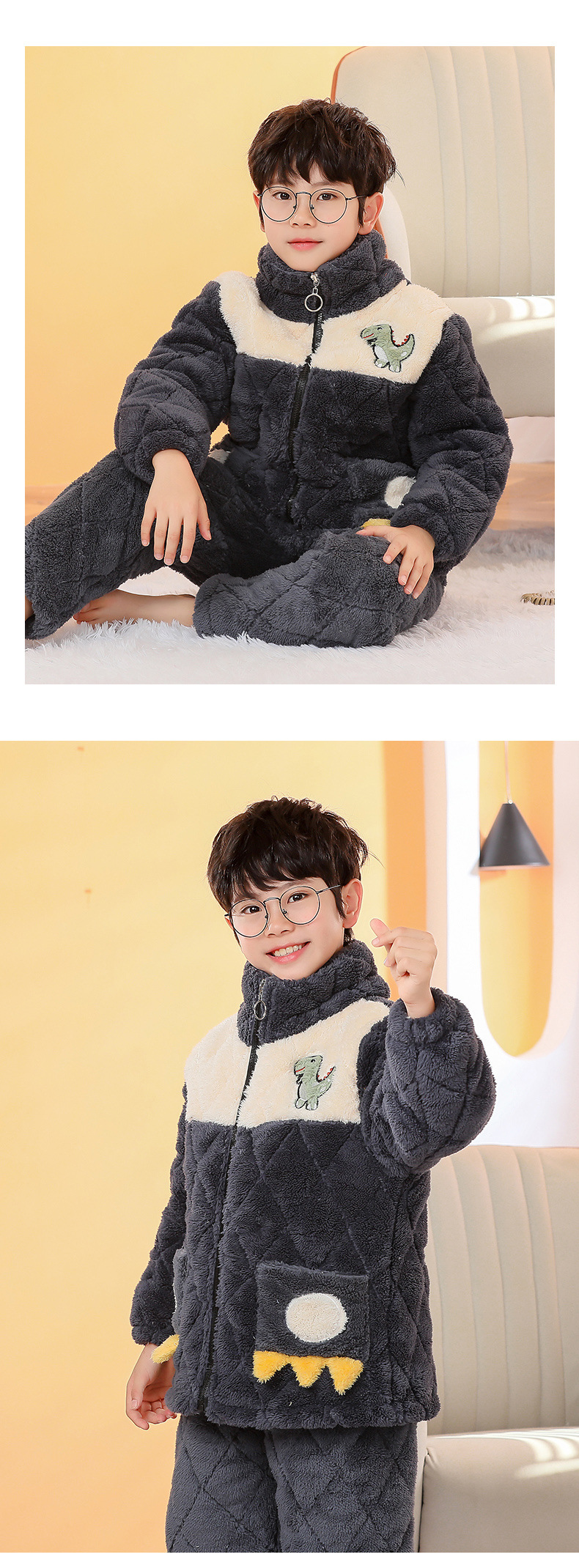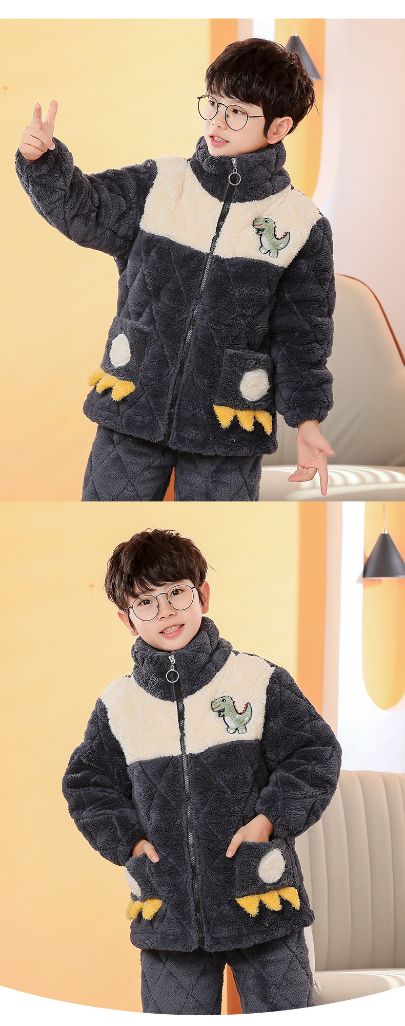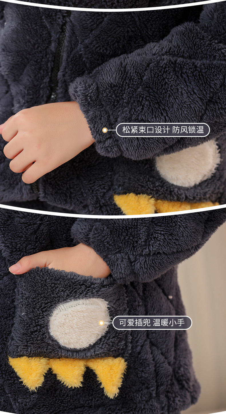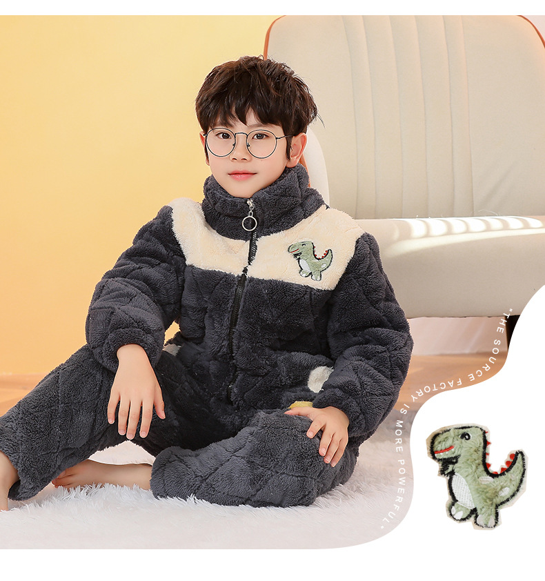 플란넬 따뜻한 가을/겨울 어린이 잠옷 산호 양털 3 층 면 기모 두꺼운 소년 중대형 어린이 가정복스토어 가기