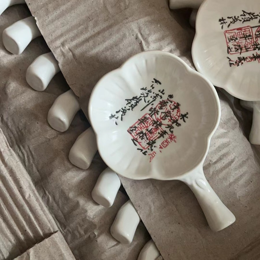 공장 직접 다기능 얼음 크래킹 유약 매화 접시 핸들 세라믹 잉크 접시 딥 이중 목적 젓가락 랙