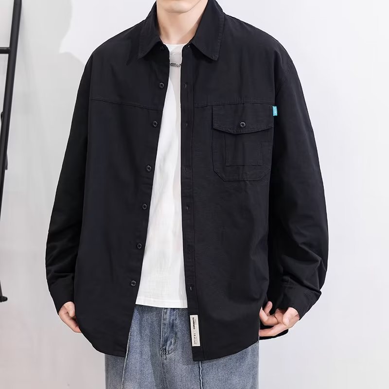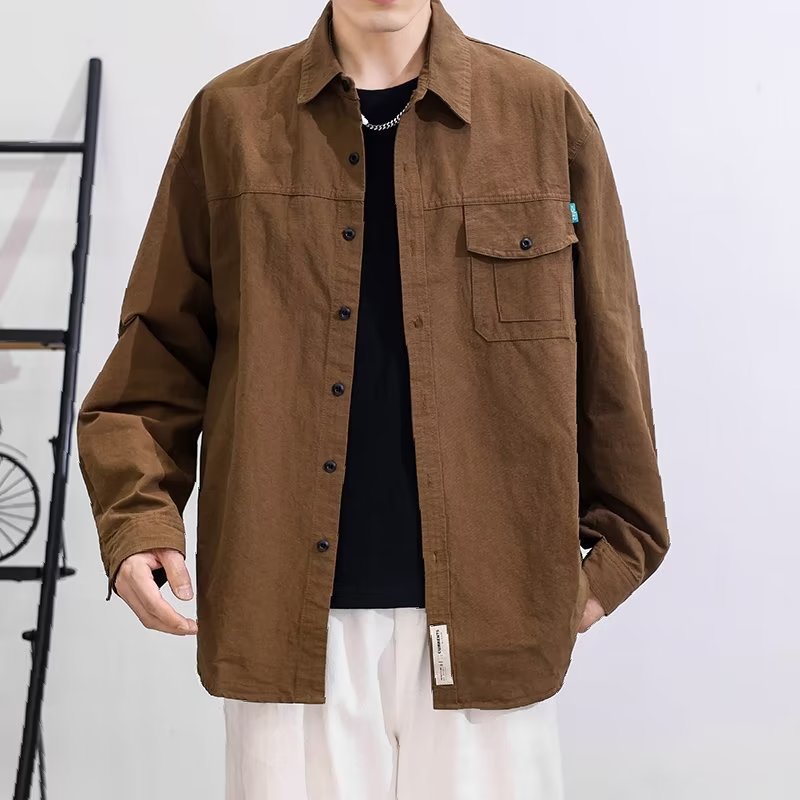 남성용 긴팔 셔츠 2026 봄 가을 신상 일본풍 작업복 스타일 셔츠 남성 캐주얼 루즈핏 단색 아우터스토어 가기