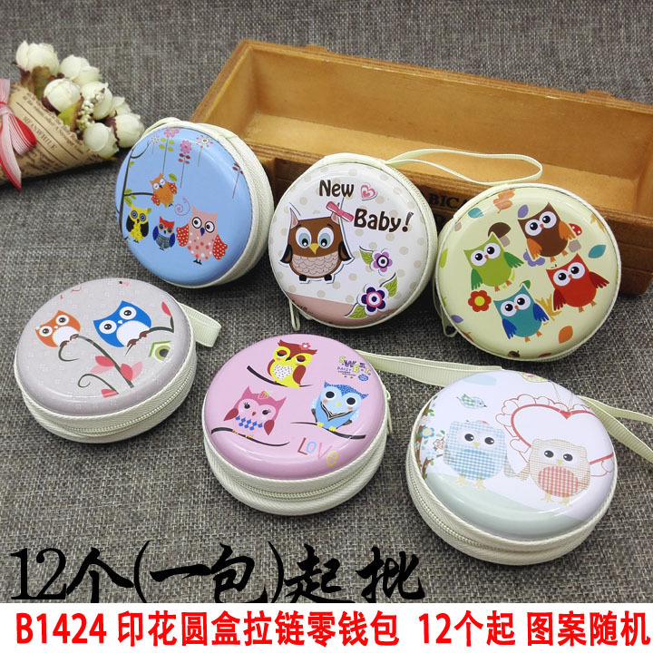 • B1424 인쇄 라운드 박스 지퍼 동전 지갑