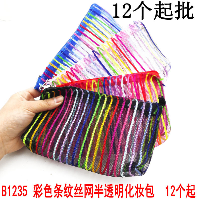 B1235 彩色条纹丝网半透明化妆包