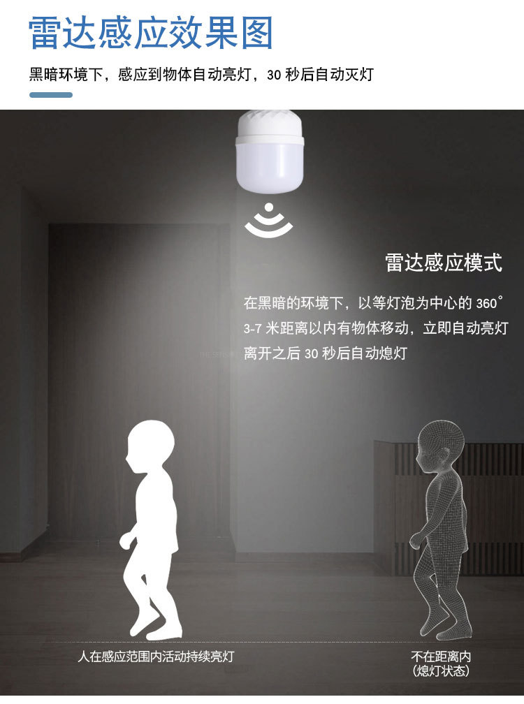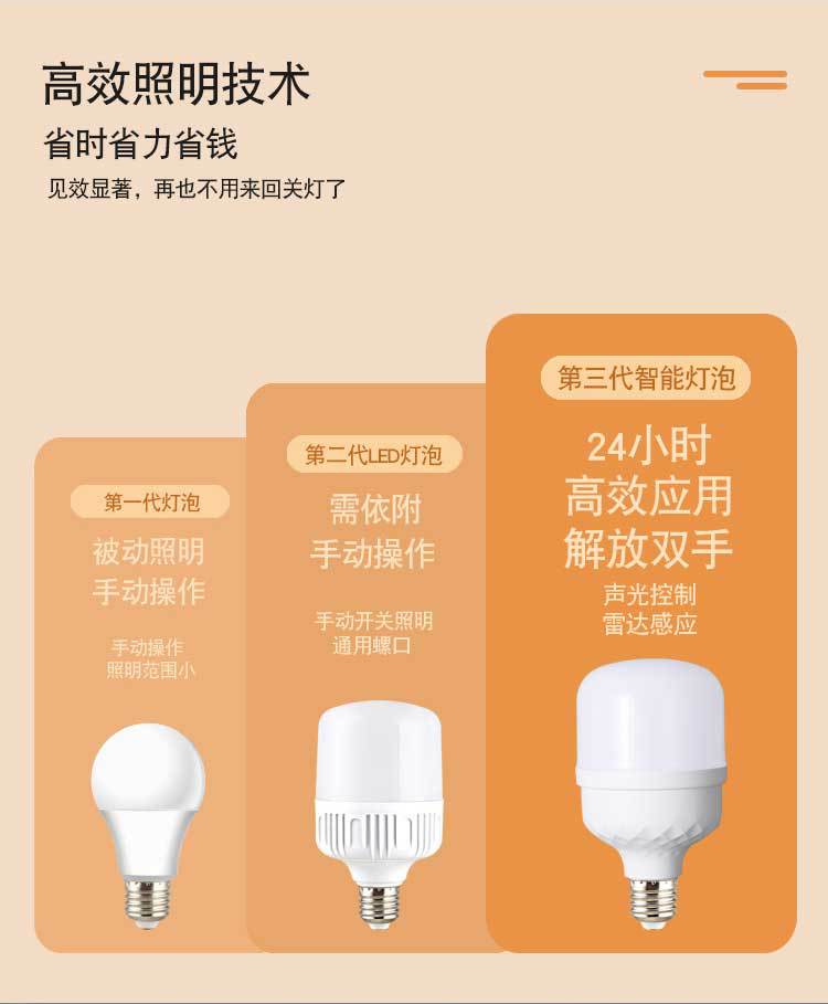 LED 음향 및 광 제어 전구, 스마트 레이더 인체 감지등, 복도용 초고휘도 가정용 비상 에너지 절약 전구스토어 가기