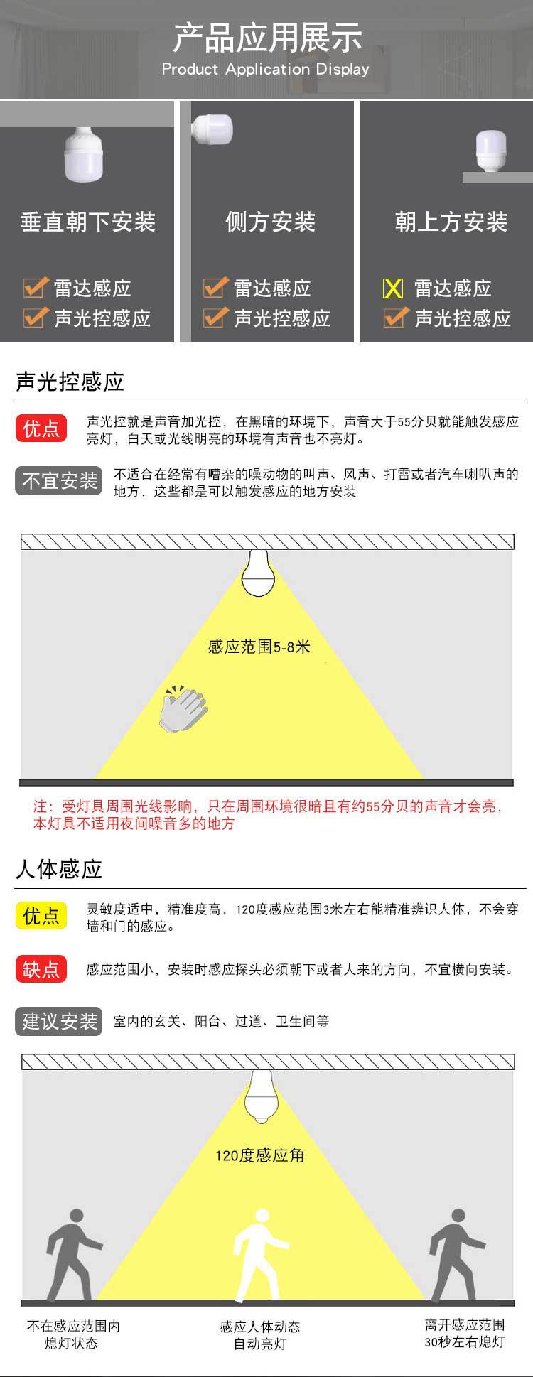 LED 음향 및 광 제어 전구, 스마트 레이더 인체 감지등, 복도용 초고휘도 가정용 비상 에너지 절약 전구