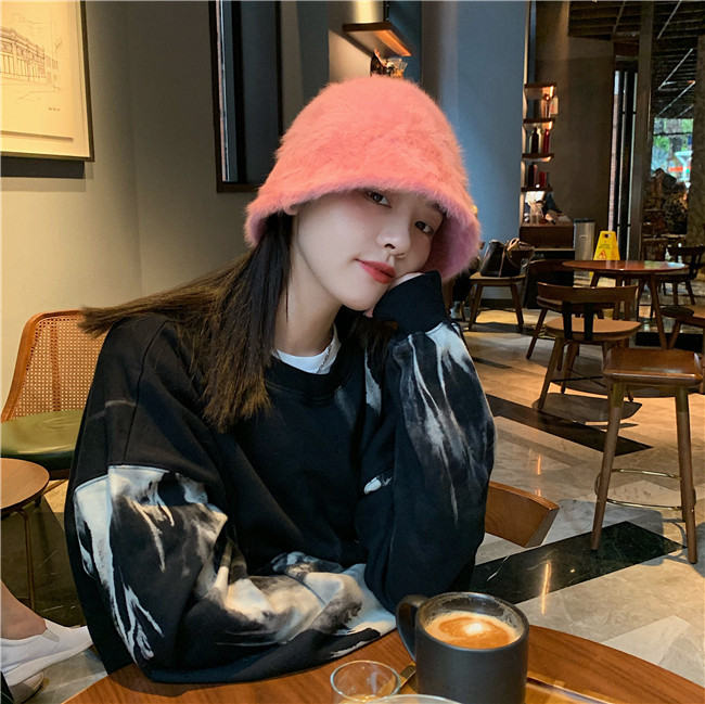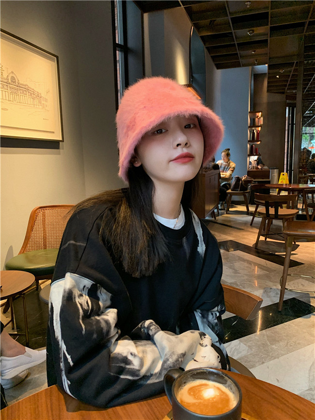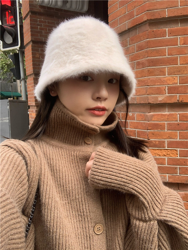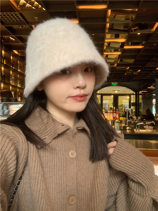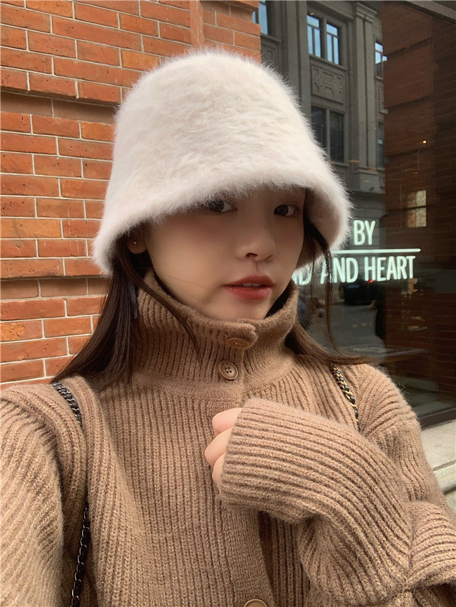 너무 상냥해 ~ 일본 레트로 조커 얼굴 덮인 토끼 모피 버킷 모자 한국 가을과 겨울 따뜻한 어부 분지 모자스토어 가기