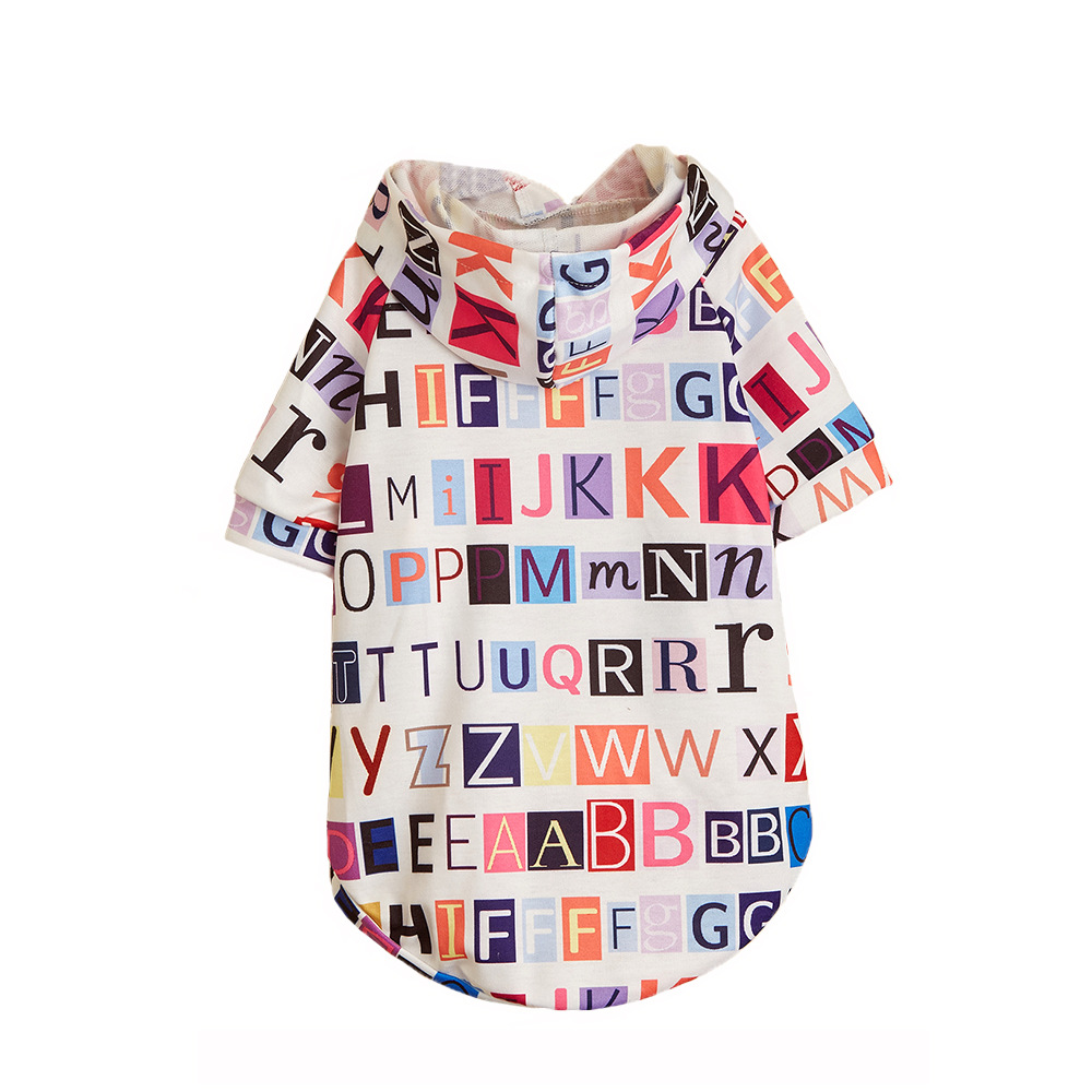 애완 동물 스웨터 컬러 레터 인쇄 봄과 여름 새로운 스타일 크로스 보더 공급 후드 스웨터 편안한 강아지 옷스토어 가기