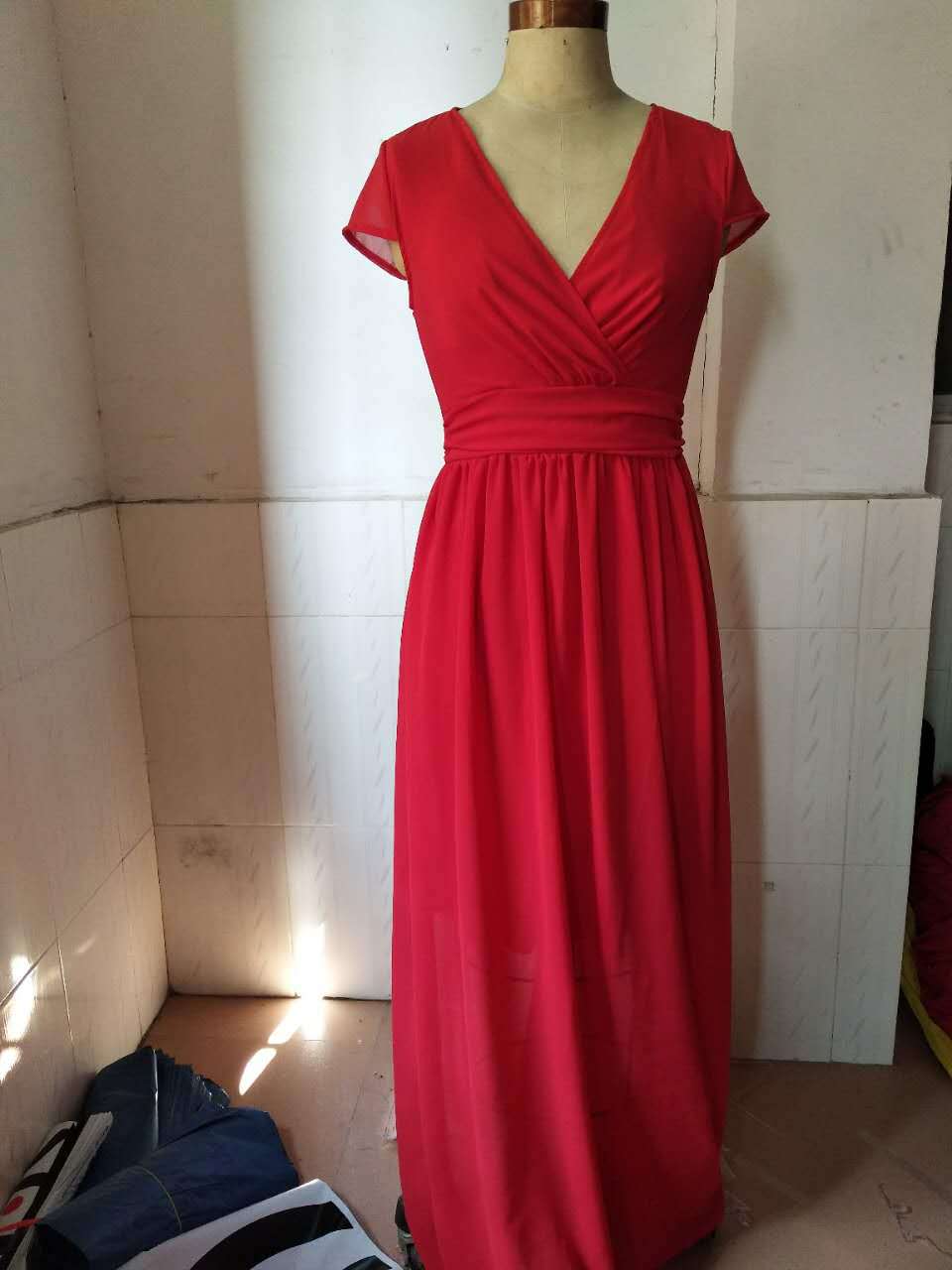 EBay AliExpress 아마존 유럽 및 미국 국경 간 V 넥 짧은 소매 보헤미안 쉬폰 허리 꽉 원피스 저녁 원피스스토어 가기