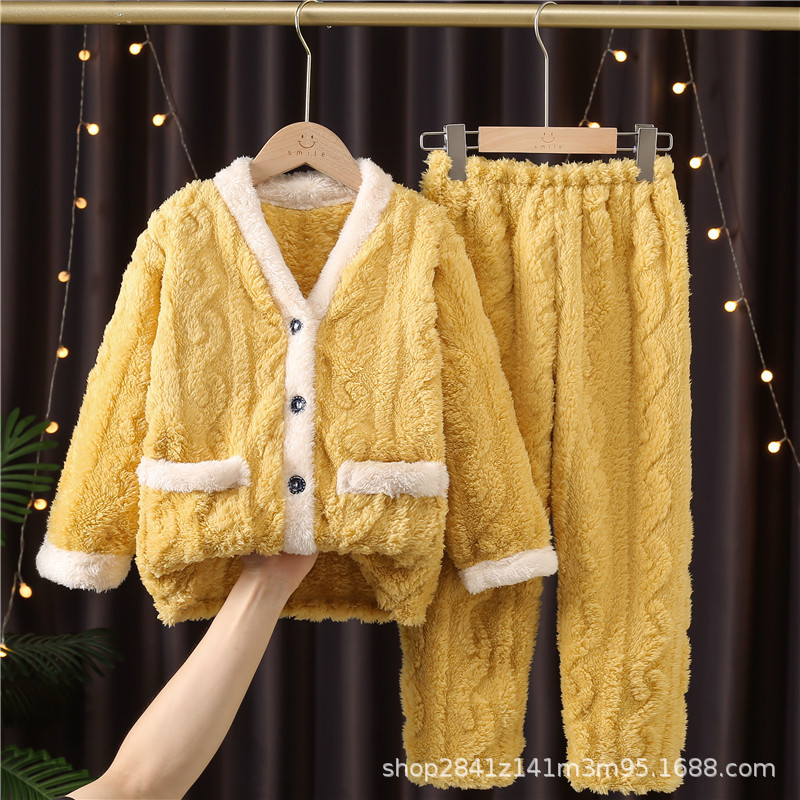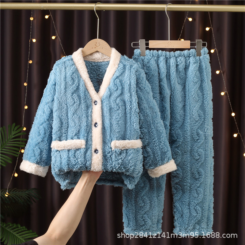 어린이 두꺼운 잠옷 새로운 플란넬 세트 칼라 소년 '큰 폭발 소녀 산호 양털 겨울 가정 옷스토어 가기