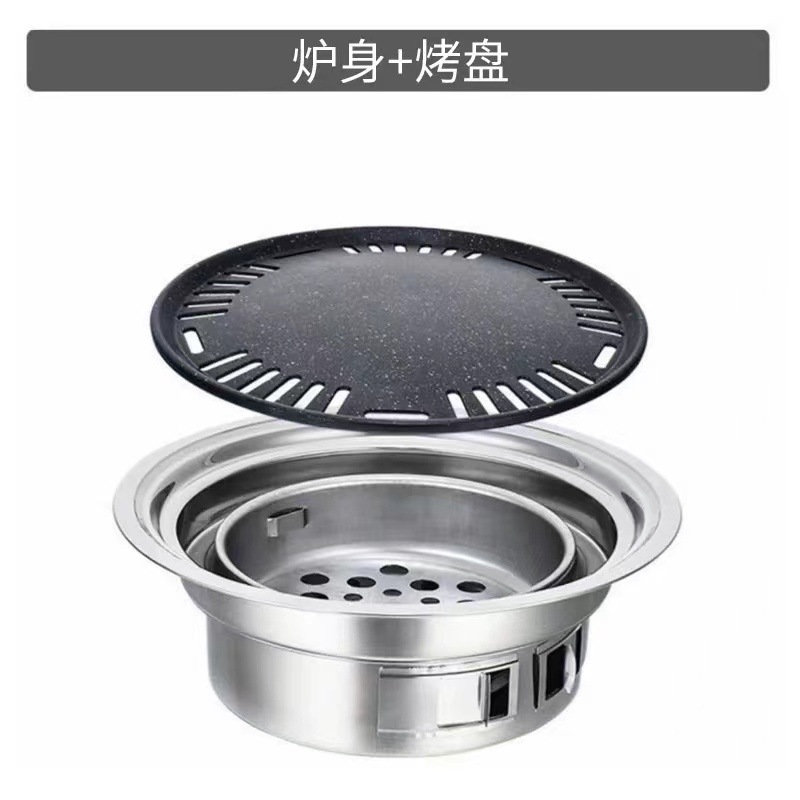 스테인레스 스틸 한국식 바베큐 오븐 라운드 가정용 상업용 캠핑 저녁 식사 탄소 오븐 휴대용 숯 바베큐 오븐스토어 가기