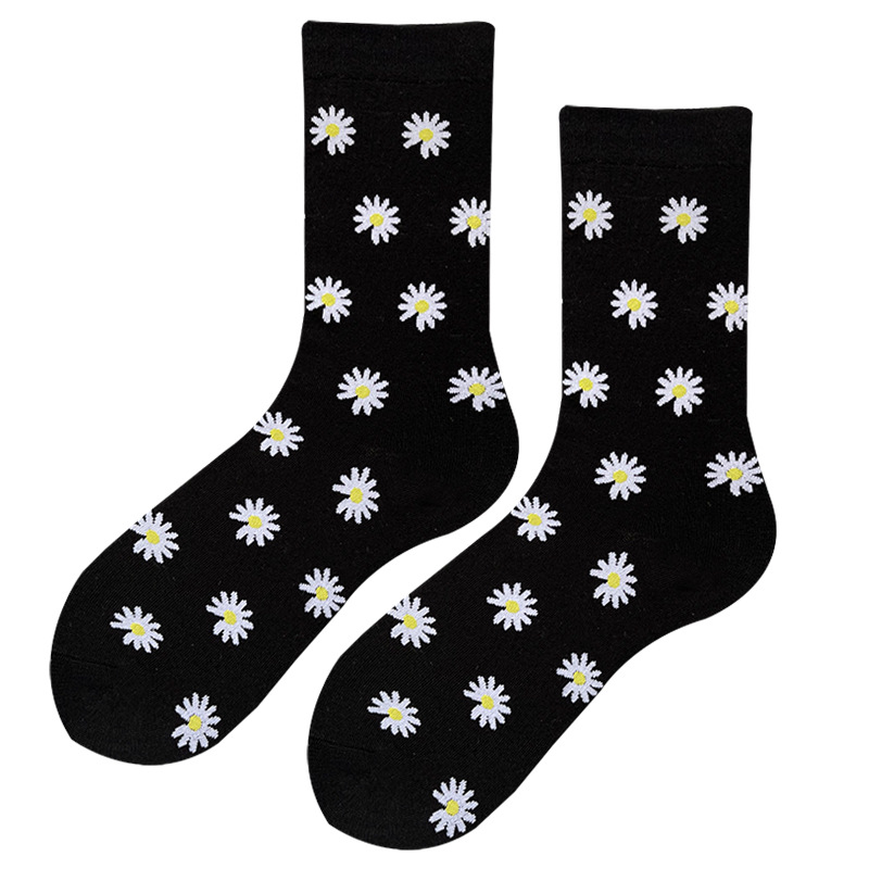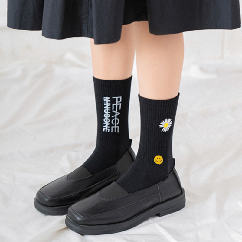 가을과 겨울 새로운 긴 양말 여성용 스포츠 미디 인 타이드 콴 Zhilong 같은 스타일 남성용 작은 데이지 스마일 스타킹