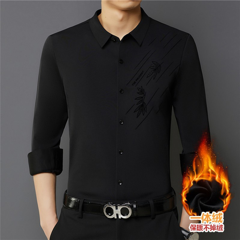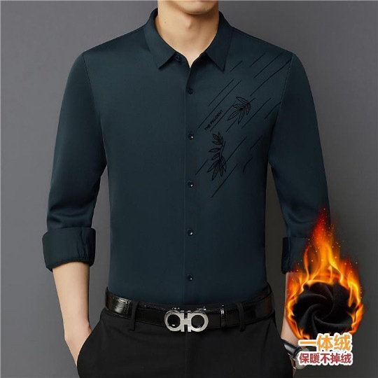겨울 남자의 기모 셔츠 중년 패션 스트라이프 옷깃 느슨한 새로운 비즈니스 남자의 셔츠 머리카락의 세대스토어 가기