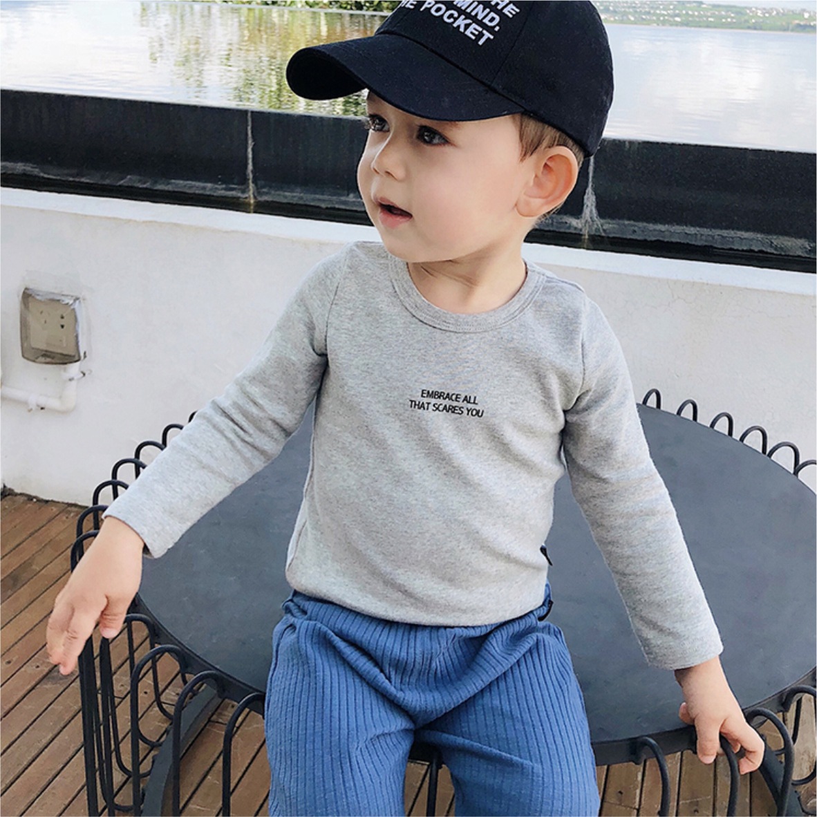 2024년 신상 아동용 순면 긴팔 티셔츠 남아 가을 이너웨어 여아 봄 가을 레터링 상의스토어 가기