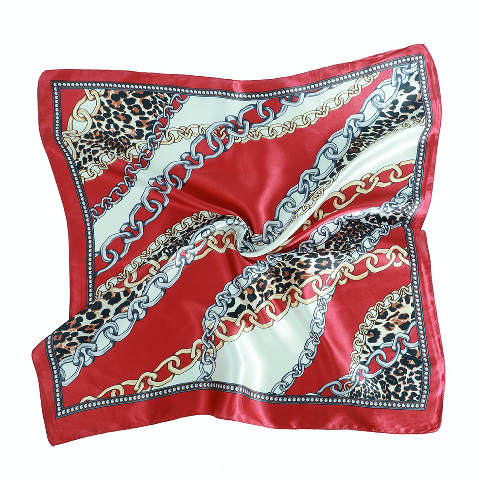 60cm 작은 사각형 표범 체인 인쇄 실크 스카프 질감 새틴 작은 사각형 유럽과 미국 캐주얼 터번