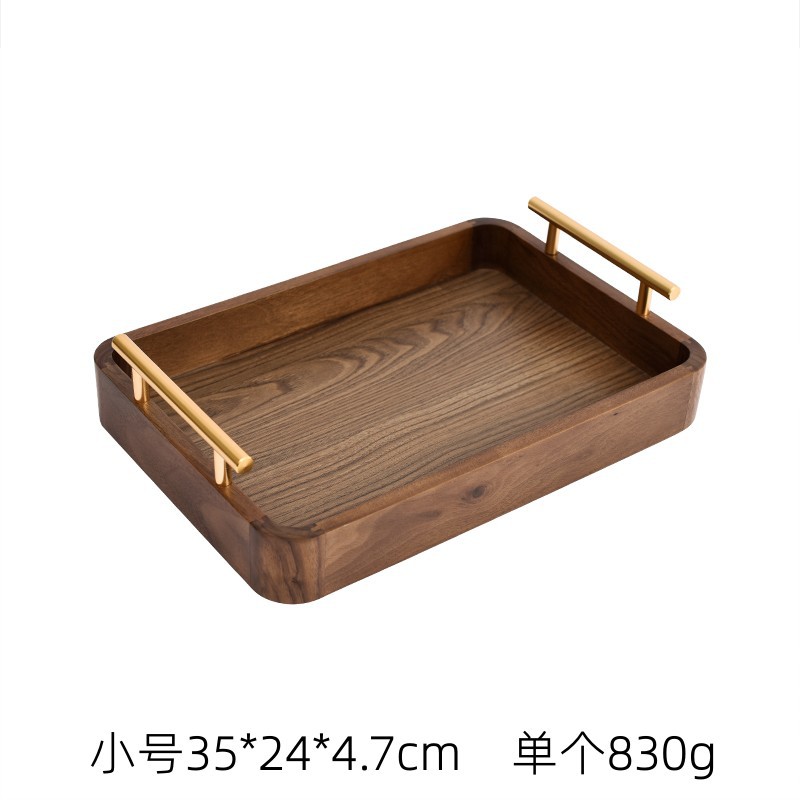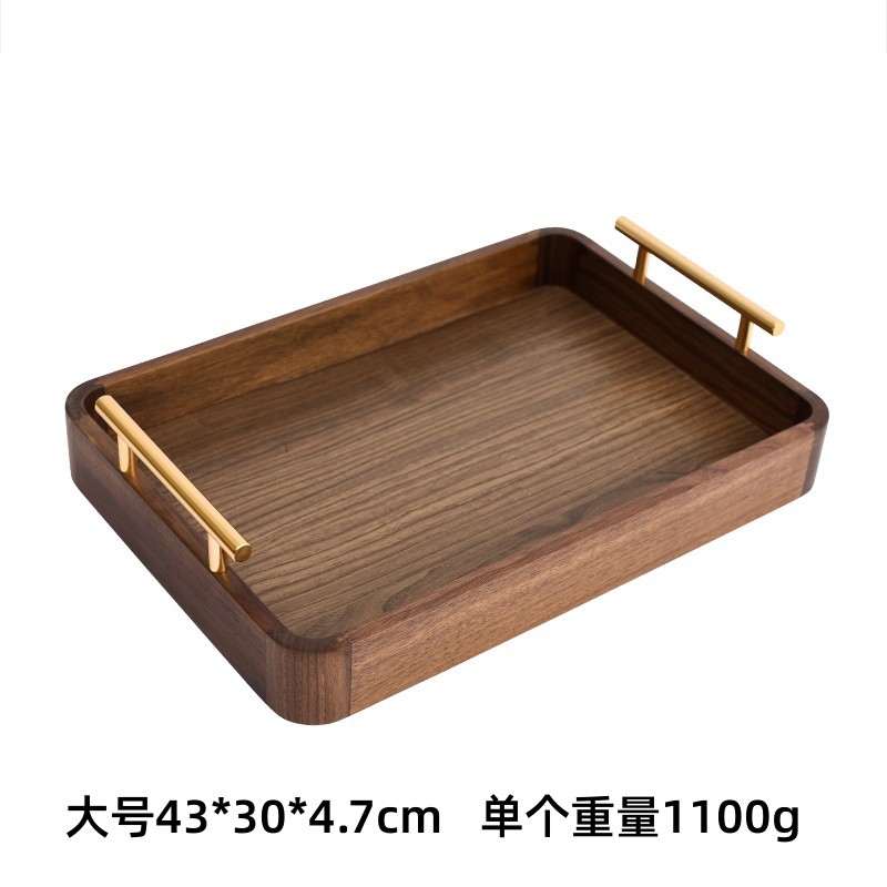 黑胡桃木托盘长方形茶点水果木盘实木咖啡蛋糕托盘木质茶具托盘