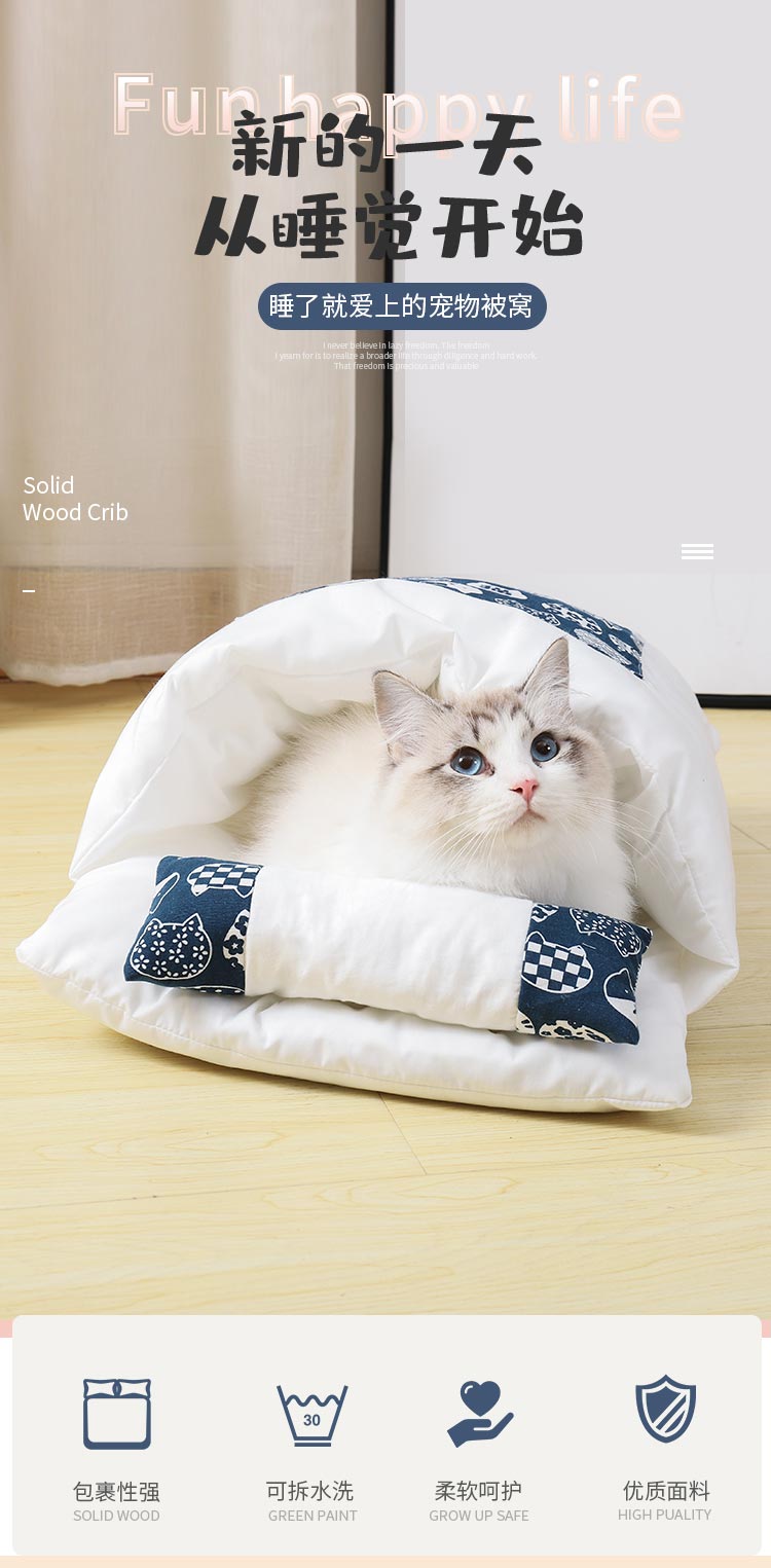 Xiyin 국경 간 고양이 침낭 분리 및 세척 가능한 고양이 반 밀폐형 고양이 둥지 따뜻한 고양이 둥지 겨울 고양이 집 고양이 침대