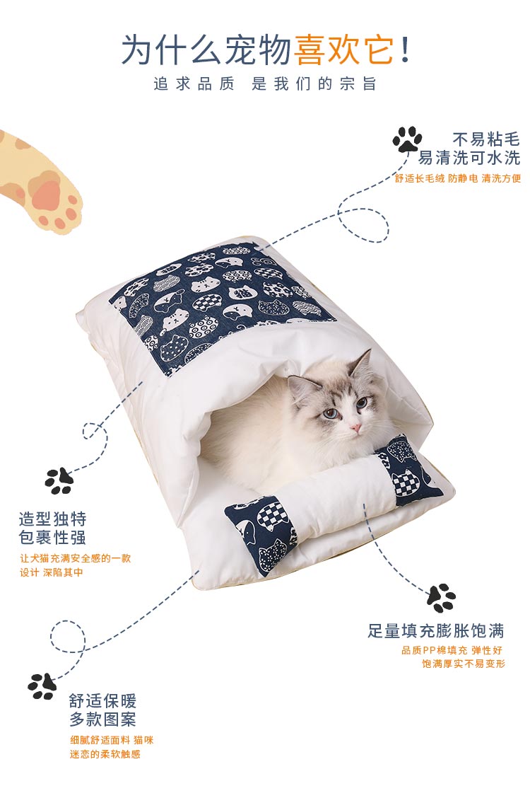 Xiyin 국경 간 고양이 침낭 분리 및 세척 가능한 고양이 반 밀폐형 고양이 둥지 따뜻한 고양이 둥지 겨울 고양이 집 고양이 침대스토어 가기