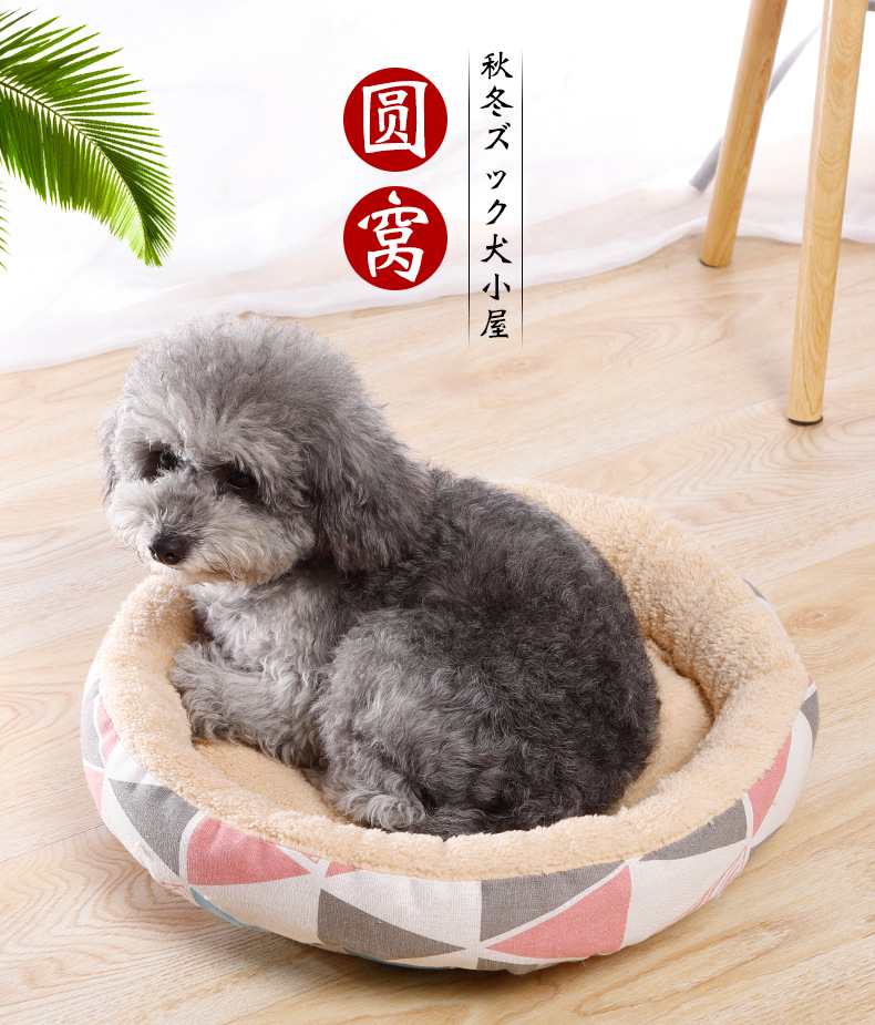 아마존 국경 간 인기 판매 현장 도매 양고기 벨벳 간단한 스타일 개 개집 캔버스 인쇄 만화 고양이 개집 애완 동물 개집