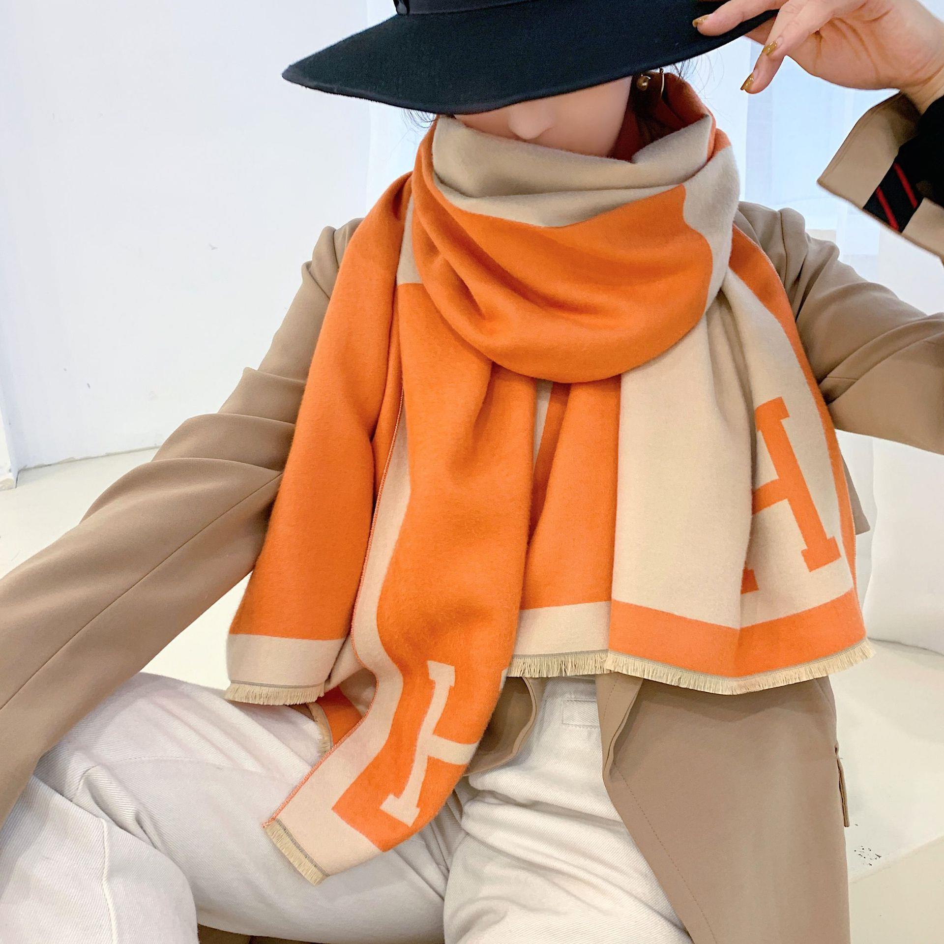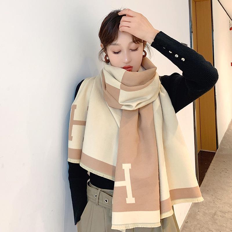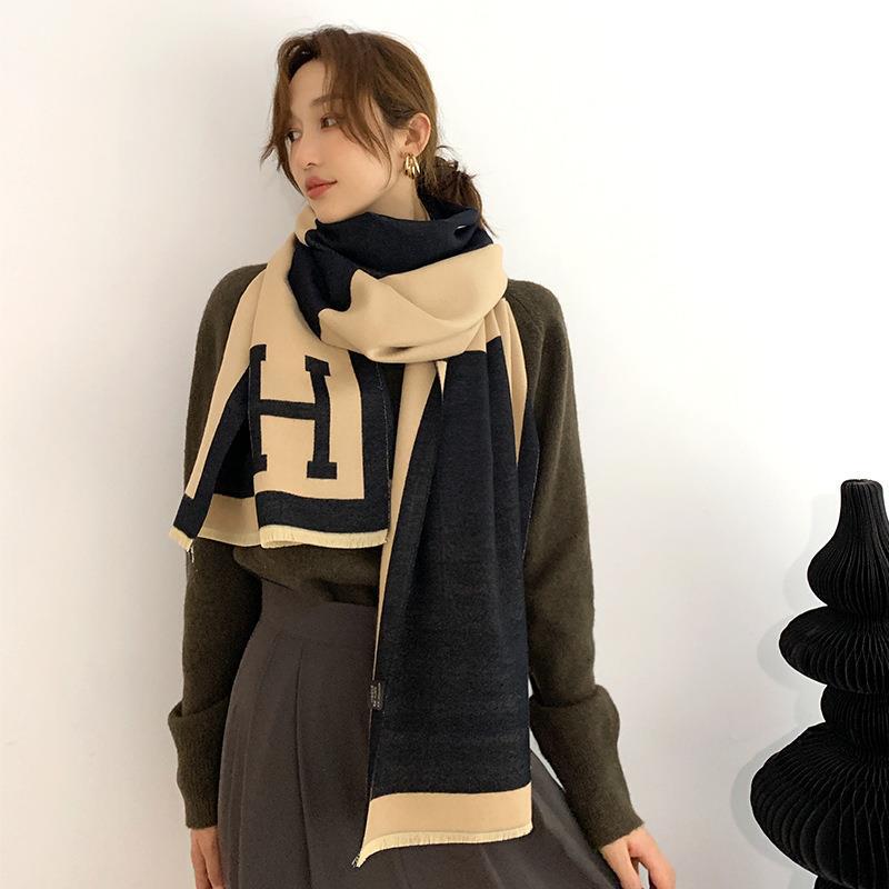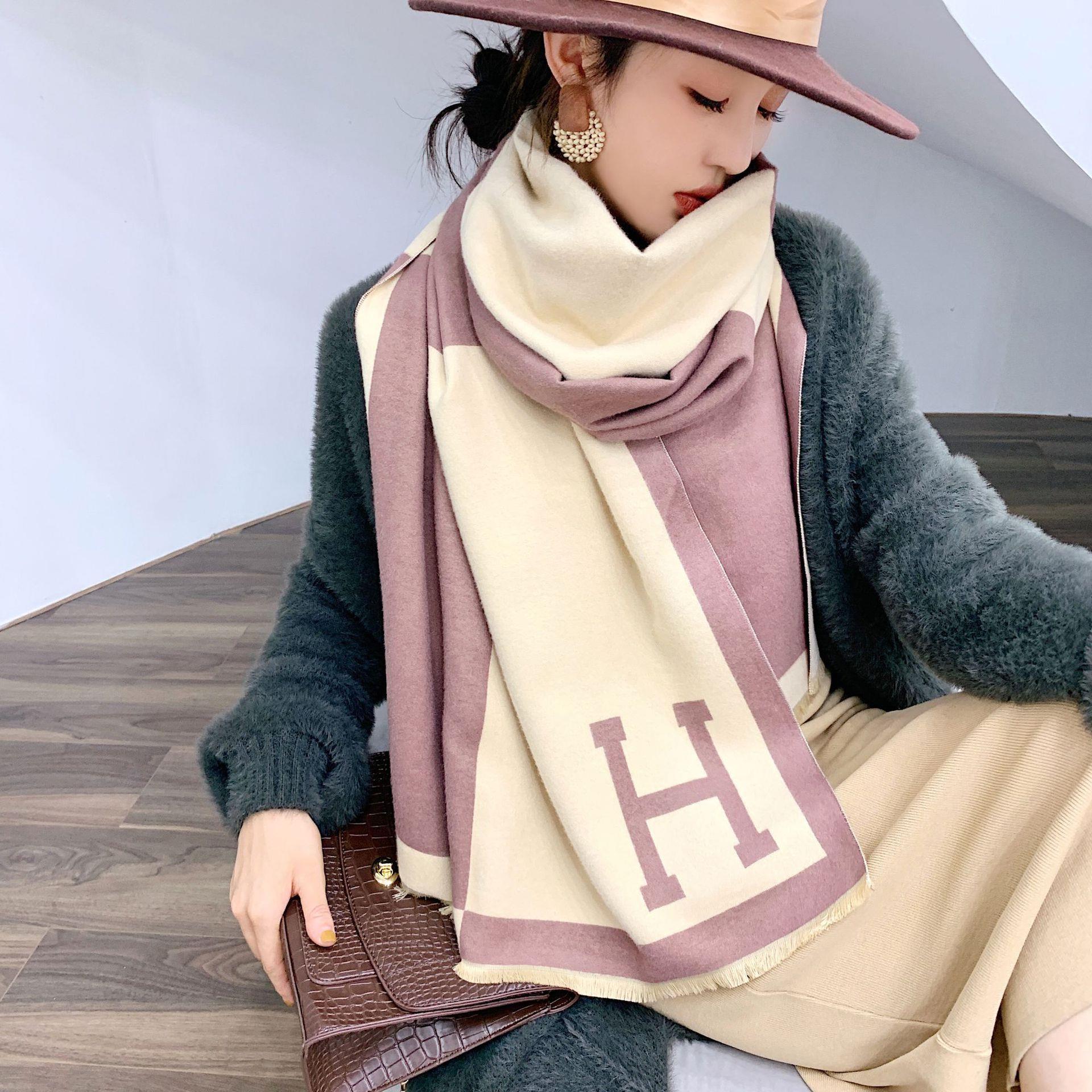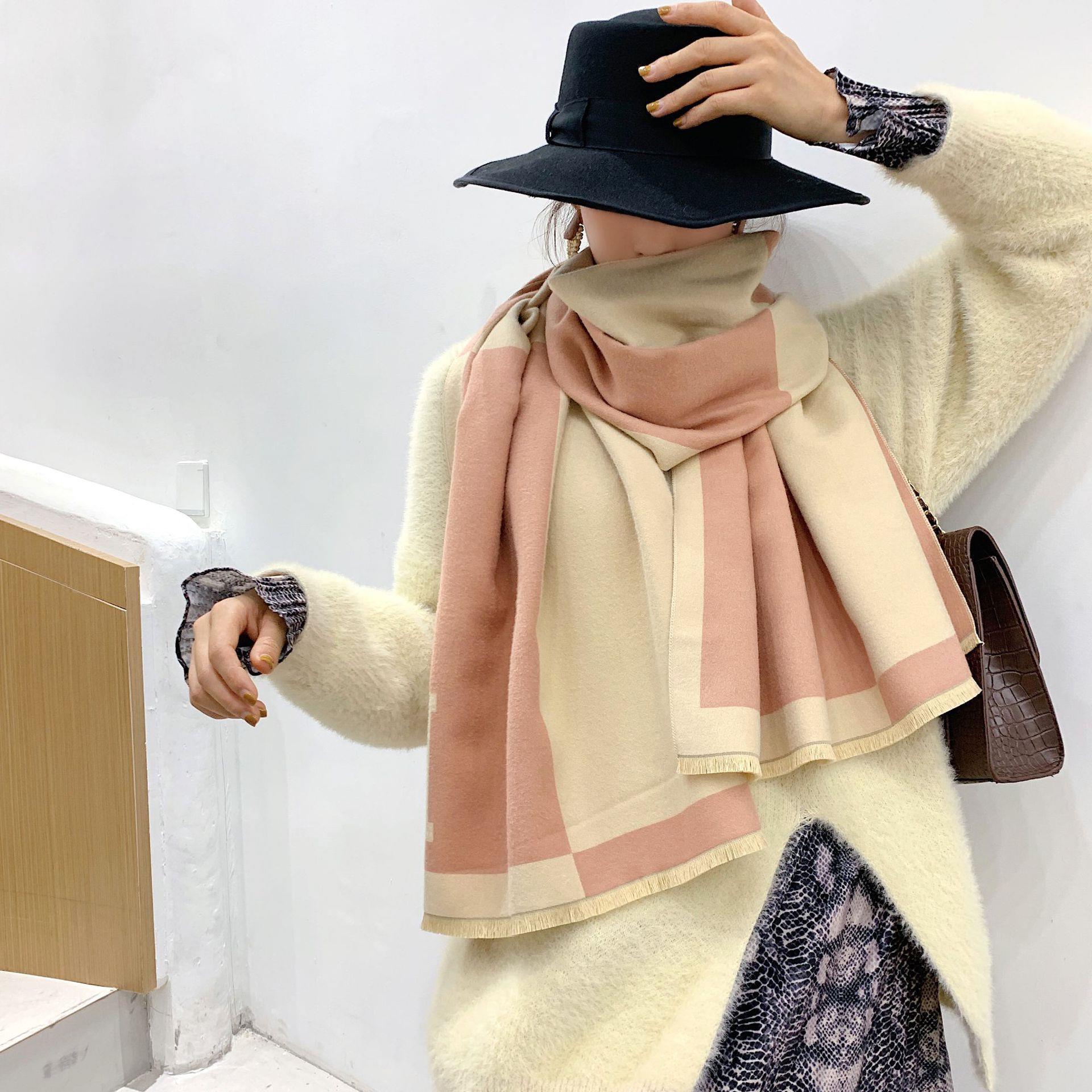 일본과 한국 달콤한 2021 새로운 스타일 스카프 여성용 겨울 유럽과 미국 색상 매칭 따뜻한 목 모조 캐시미어 편지 양면 플러스스토어 가기