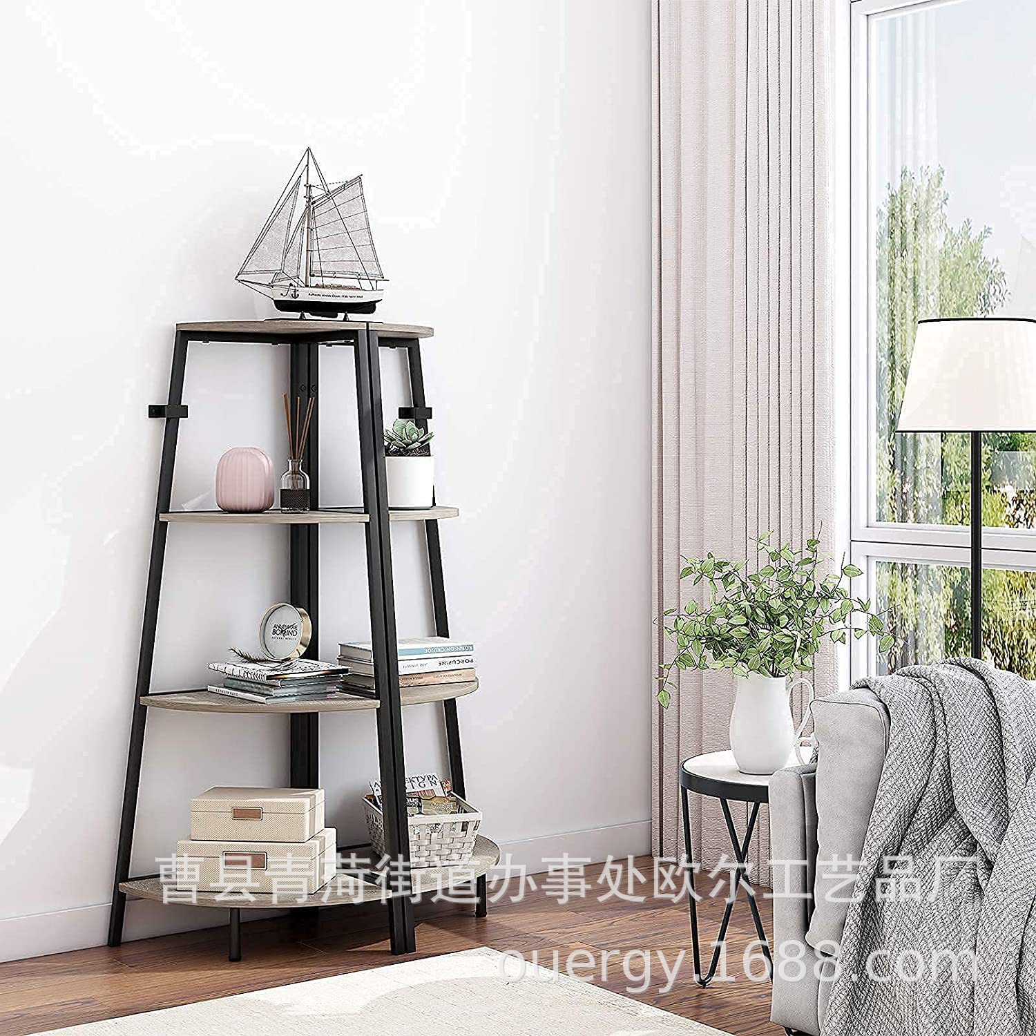 Nordic Ins 새로운 스타일의 거실 보관 랙 나무 코너 랙 A 형 스터디 오피스 보관 및 배열 랙스토어 가기