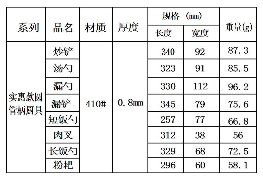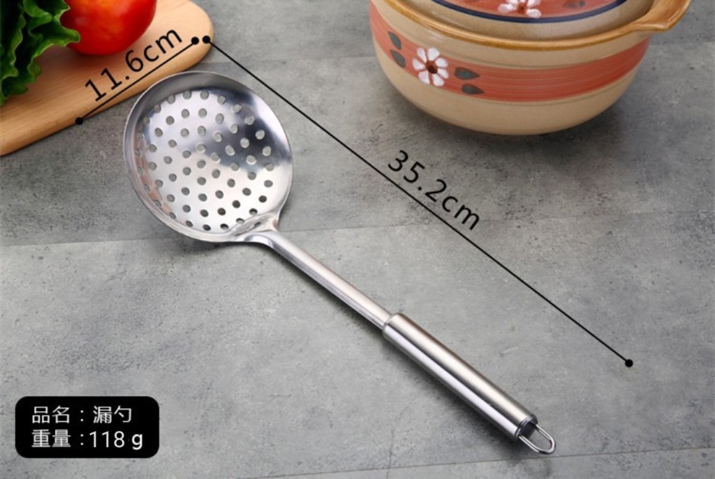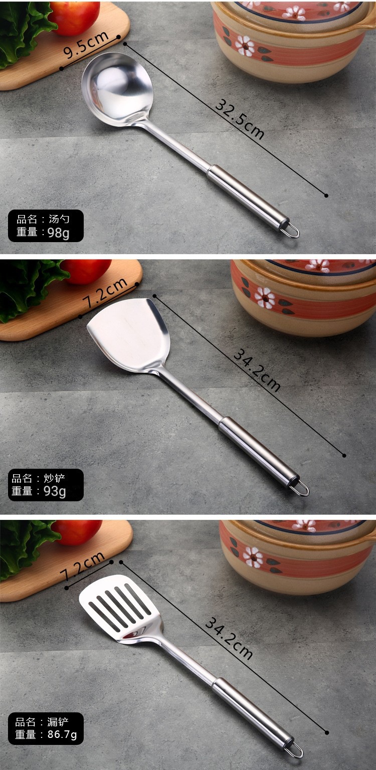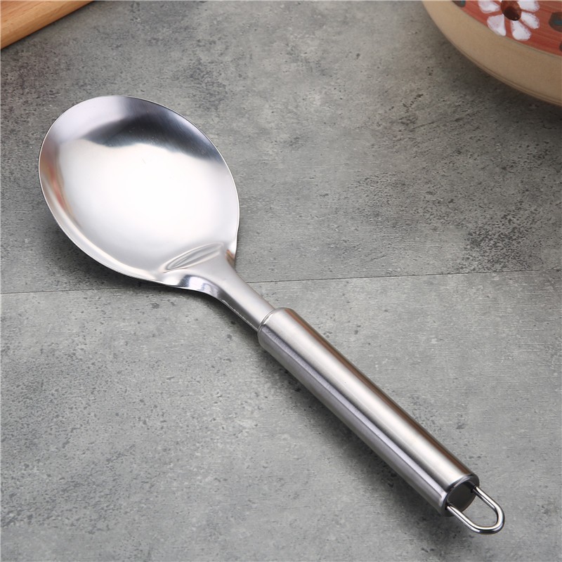 1mm 두께의 원형 튜브 손잡이 주걱 스테인레스 볶음 주걱 도매 중공 손잡이 스테인레스 수프 스푼 튀김 주걱