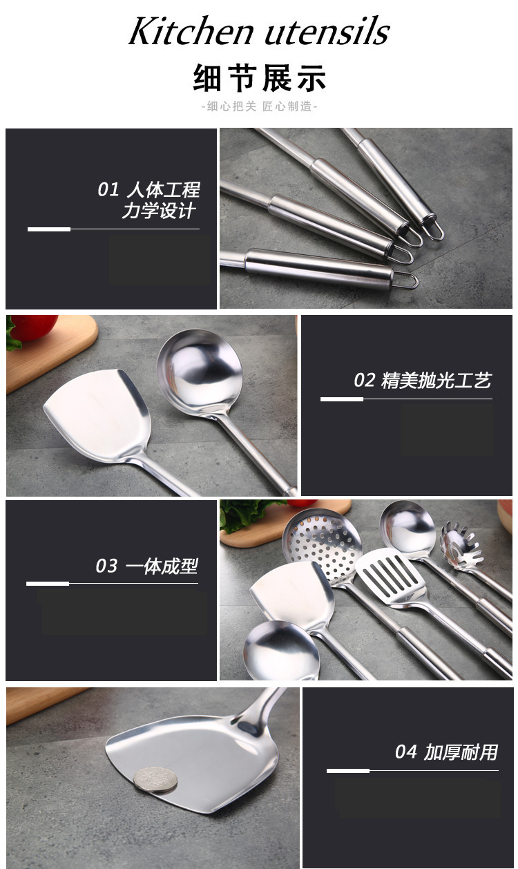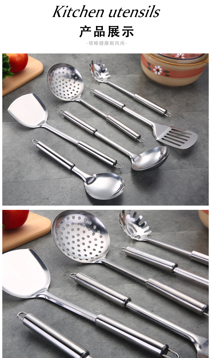 1mm 두께의 원형 튜브 손잡이 주걱 스테인레스 볶음 주걱 도매 중공 손잡이 스테인레스 수프 스푼 튀김 주걱스토어 가기