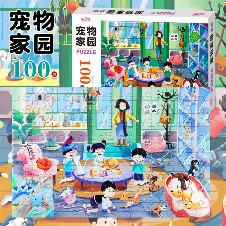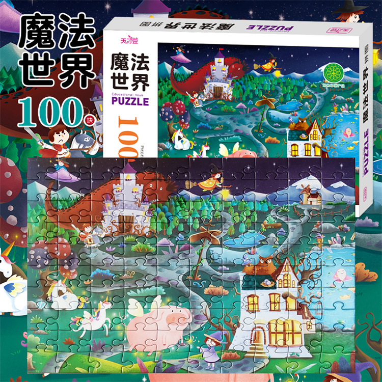 儿童大拼图拼板3-6岁幼儿园拼图宝宝智力开发玩具早教游戏卡100片