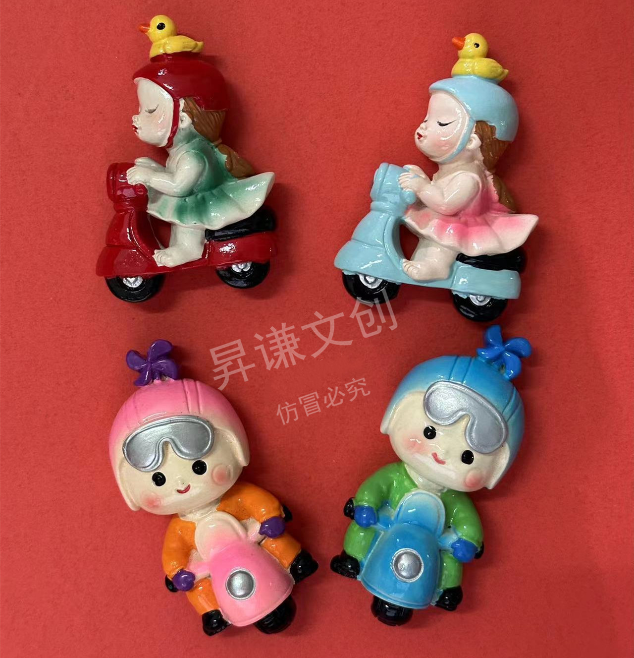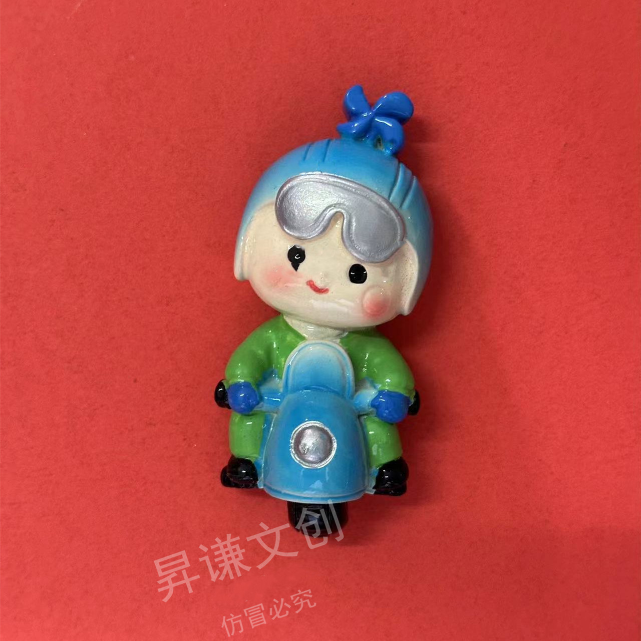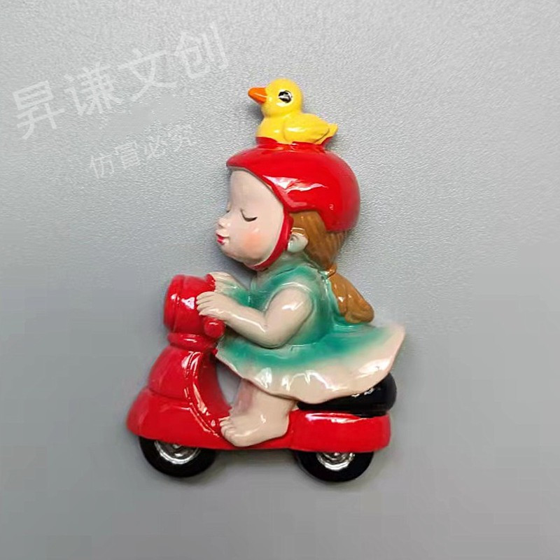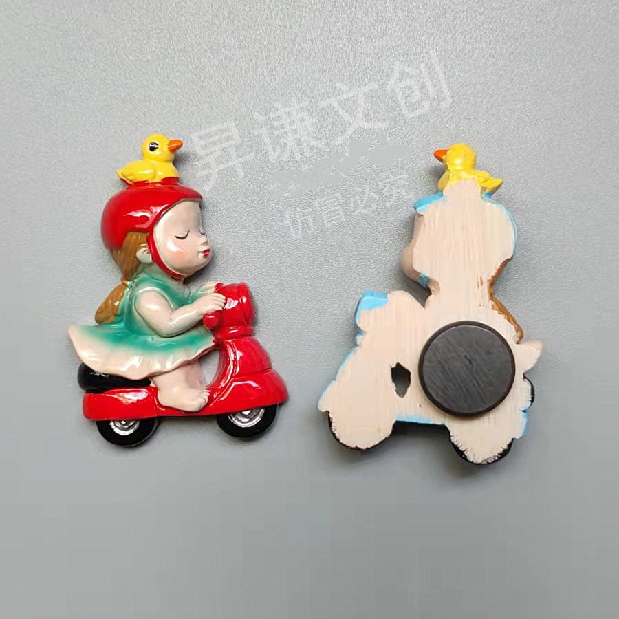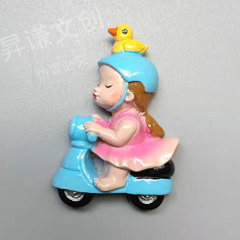 새로운 만화 수지 귀여운 오토바이 소녀 창조적 인 3 차원 수지 자기 냉장고 스티커 관광 기념 보석스토어 가기