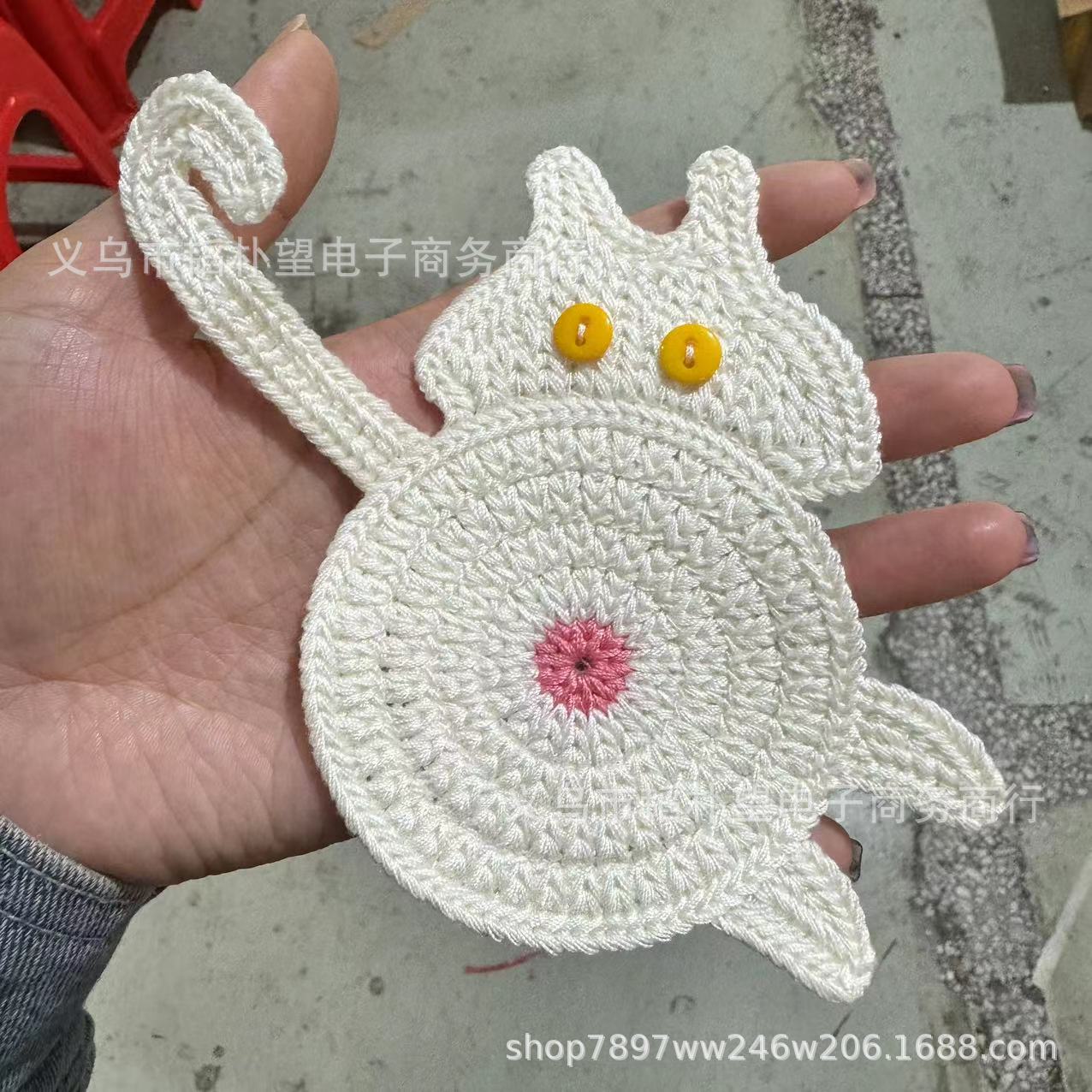 Cat Butt Coasters 跨境圣诞猫屁股杯垫编织猫咪杯垫