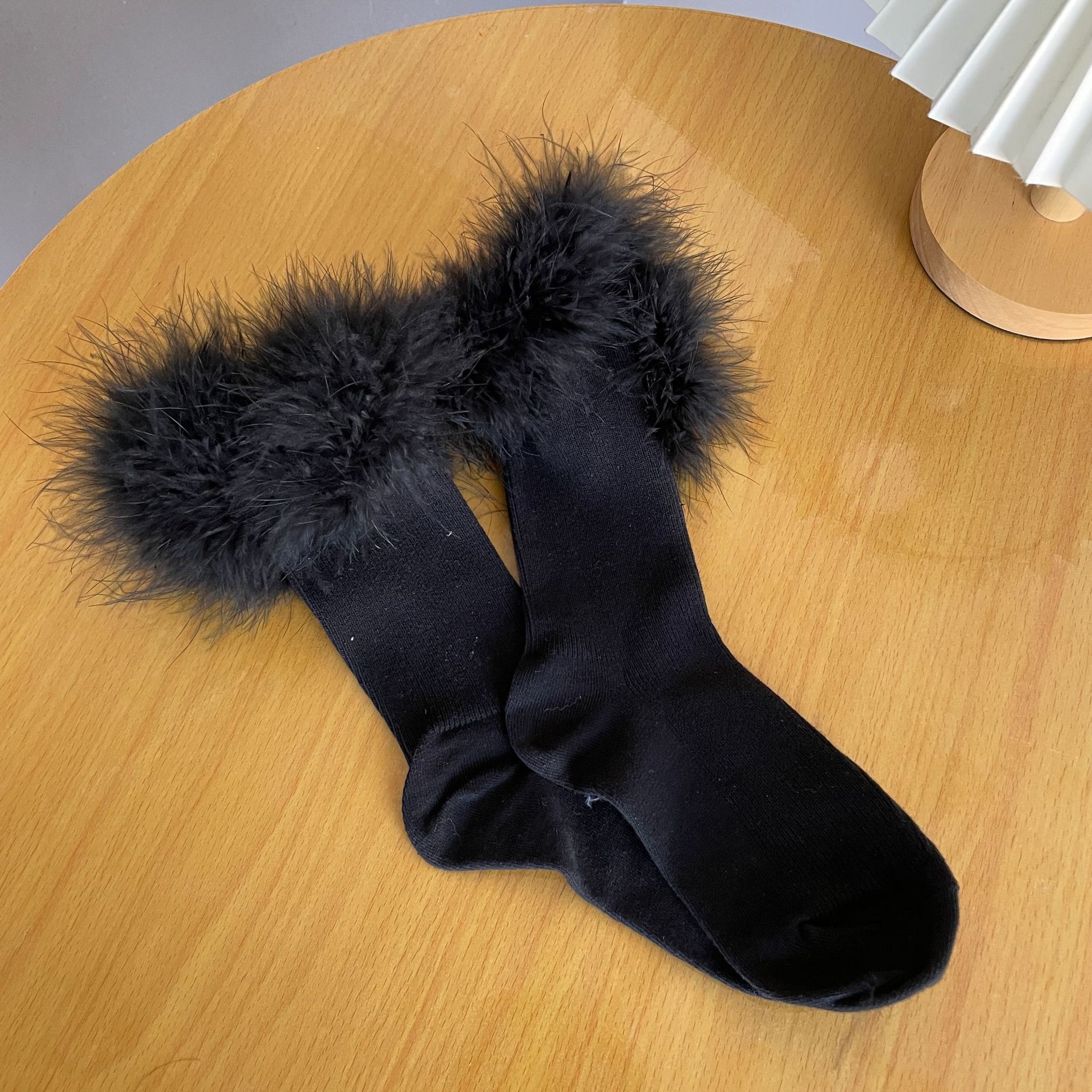 새로운 푹신한 깃털 미드 튜브 면 양말 여아 양말 롱 부츠 양말 스파이스 걸스 힙 여성용 미드 튜브 양말스토어 가기