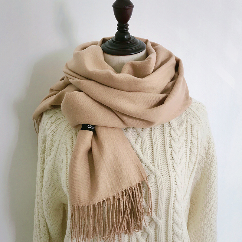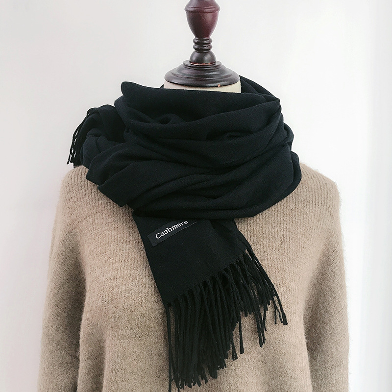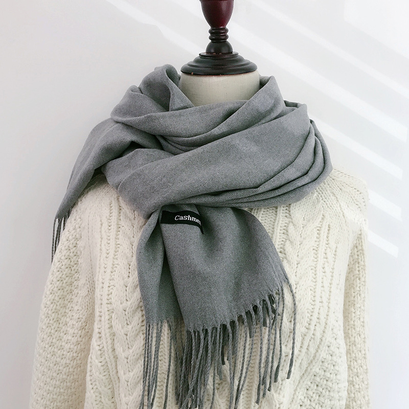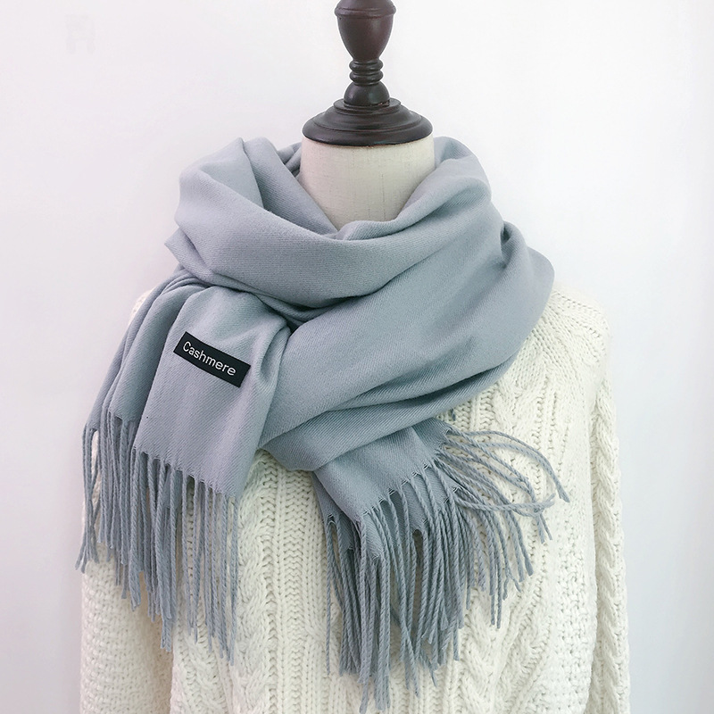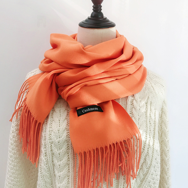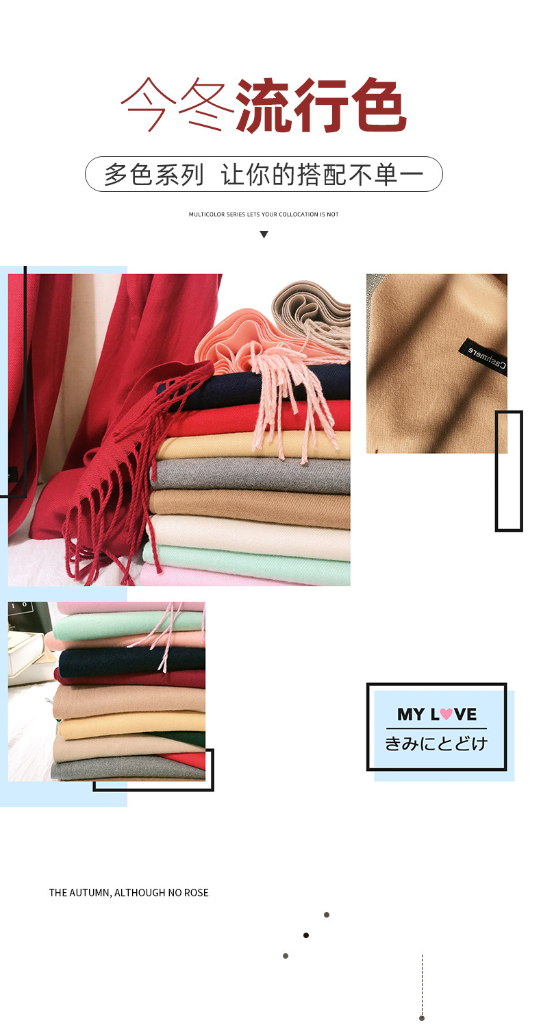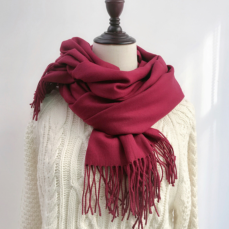 레드 스카프 중국 레드 로고 자수 인쇄 솔리드 컬러 모조 캐시미어 가을, 겨울 한국 스타일 여성용 다용도 숄 하이 엔드스토어 가기